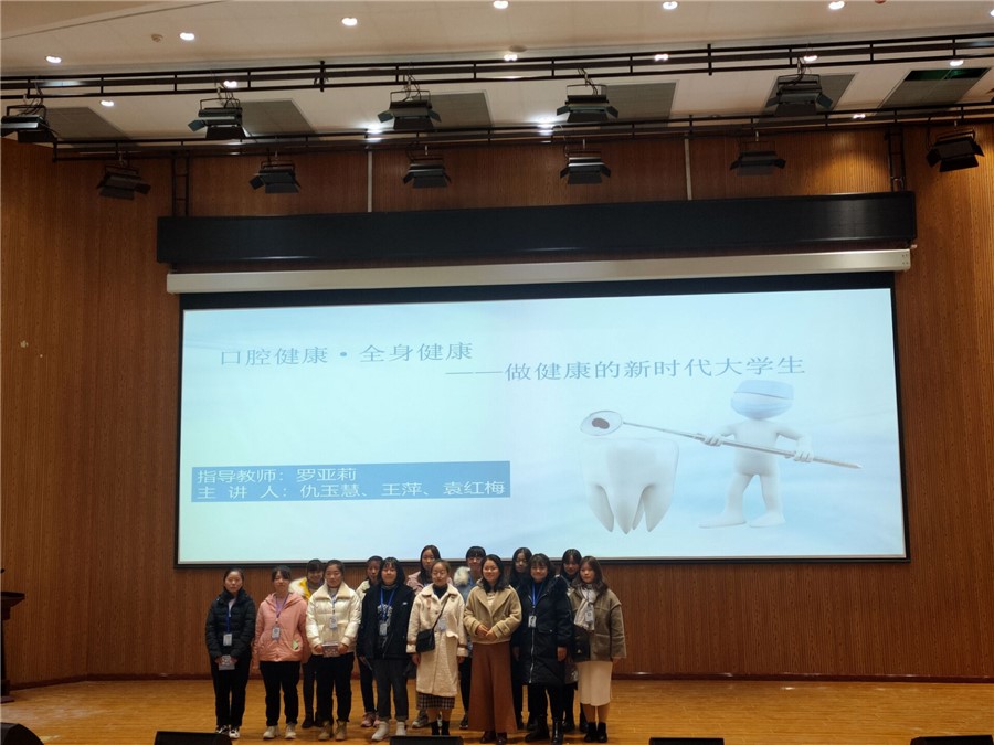 此次活动的主题为“口腔健康、全身健康”,宣讲的内容主要包括口腔溃疡、龋齿形成的病因以及口腔常见疾病的治疗和预防等。两所兄弟院校共计1500余人倾听了此次宣讲,我校参加此次宣讲的同学们,前期经过指导老师的培训、选拔,同学们自己制作了精美的PPT课件,准备了各式口腔模具,运用自己所学知识,形象生动地为兄弟院校的同学们上了一堂别开生面的口腔健康课,科普了口腔保健常识,通过护齿、防龋促进全身健康,活动受到了兄弟院校师生们的欢迎和好评。