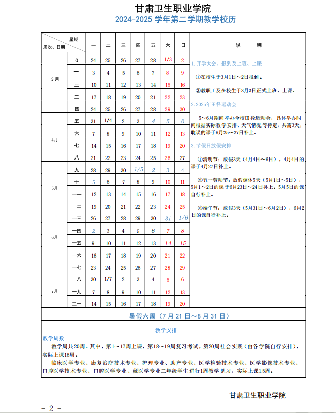 关于印发《英国365上市官网 2024-2025 学年第二学期教学校历》的通知