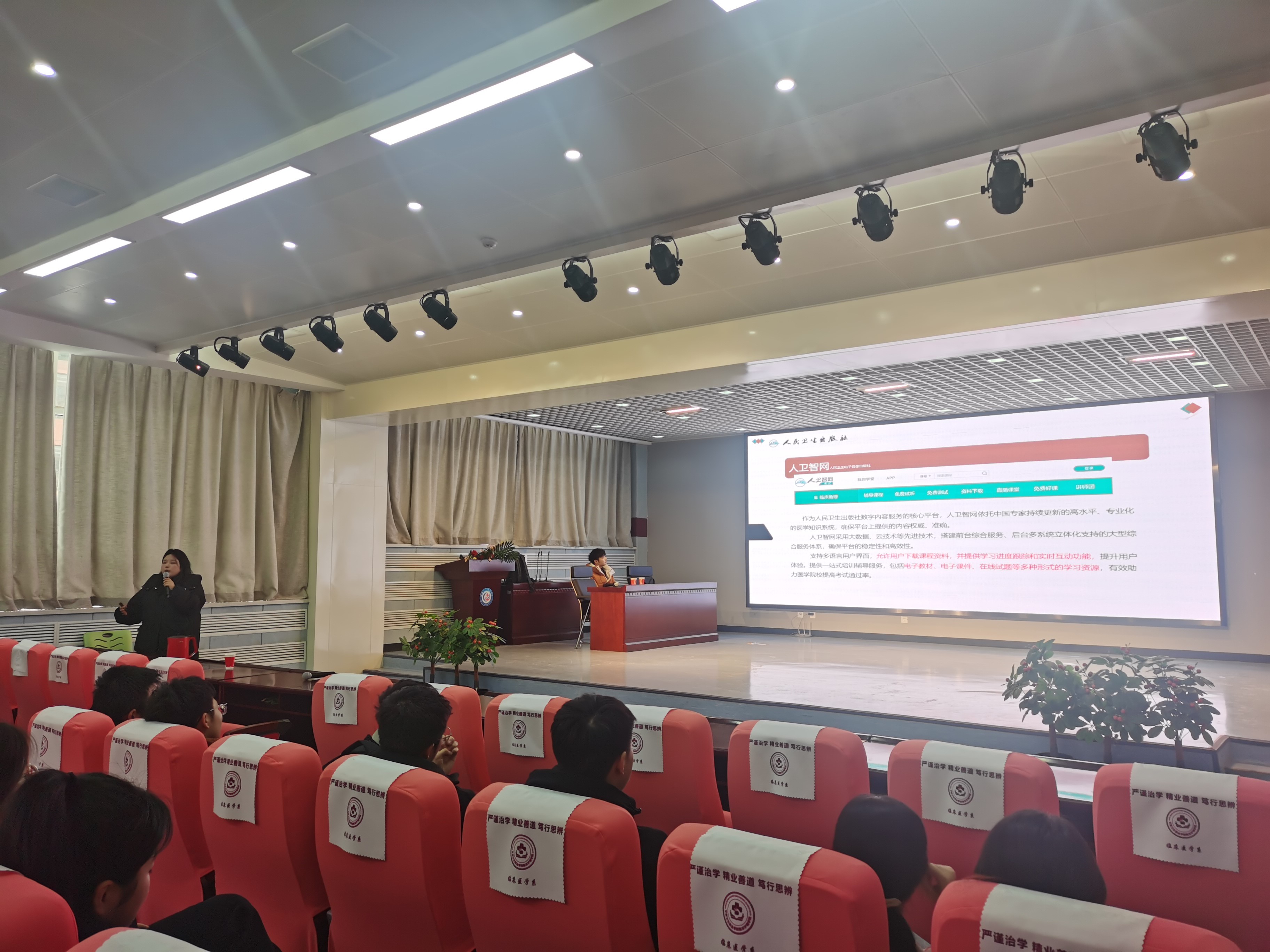 为了提高2024级临床医学专业学生助理执业医师资格考试的通过率,增强定向医学生的岗位胜任能力,临床医学院与人民卫生出版社人卫智库合作面向2024级临床医学专业学生举办岗位胜任力提升班,并于12月18日在学院一楼学术报告厅举行开班仪式。