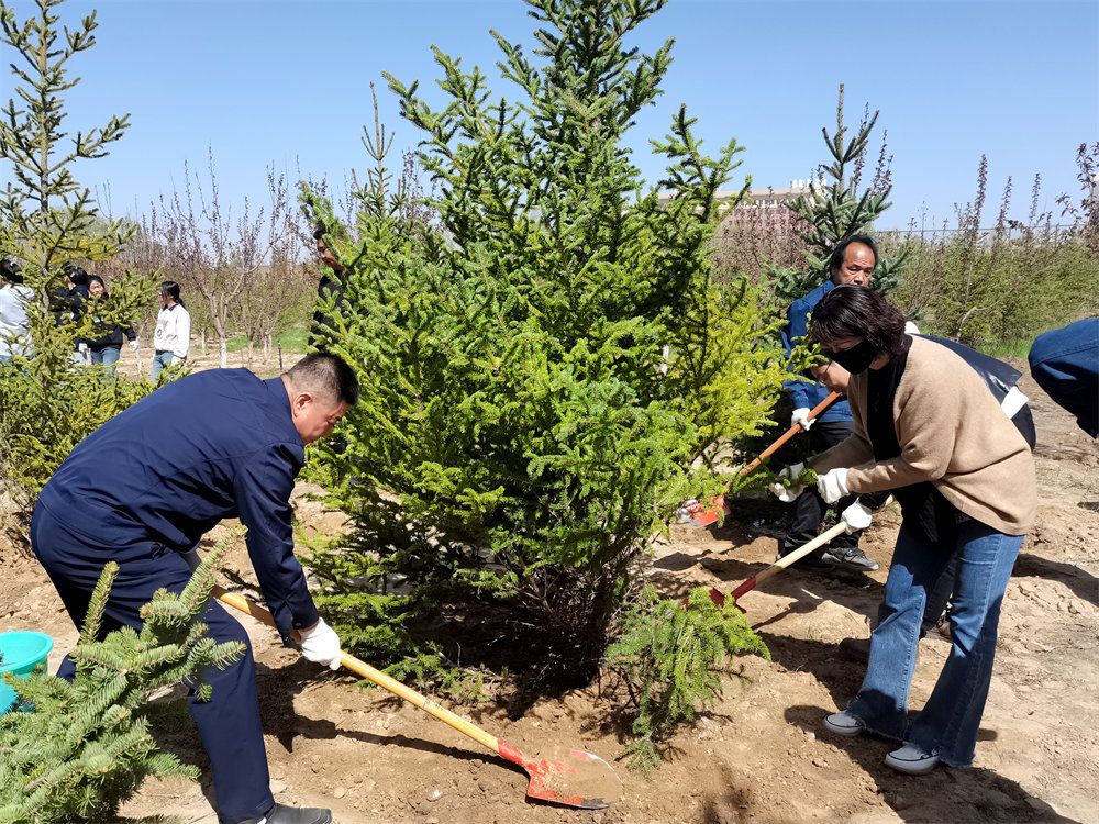 10点30分,校园内春光正好,微风习习,全体人员在党员林集合待命,高博副校长对活动进行总体安排,宣布植树活动正式开始。师生们积极踊跃领取树苗及手套、铁锹、水桶等工具,迫不及待地投入到种树活动中,现场气氛热烈而有序,大家3-5人一组,有分工有合作,搬运树苗、扶正培土、浇水定根,后勤工作处、物业管理公司技术人员现场指导种树技巧,大家携手栽下希望之树,为学校增添绿意,以实际行动践行“绿水青山就是金山银山”理念。
