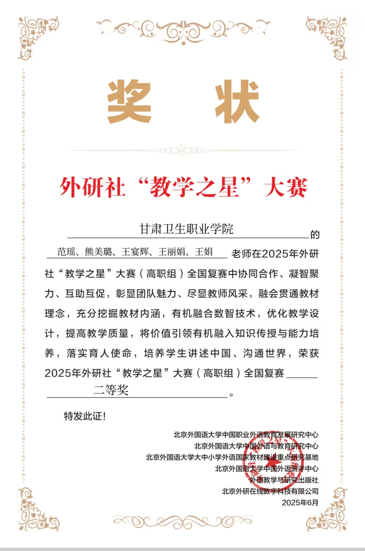 喜报!我校公共教学部教师在2025外研社“教学之星”大赛中斩获佳绩