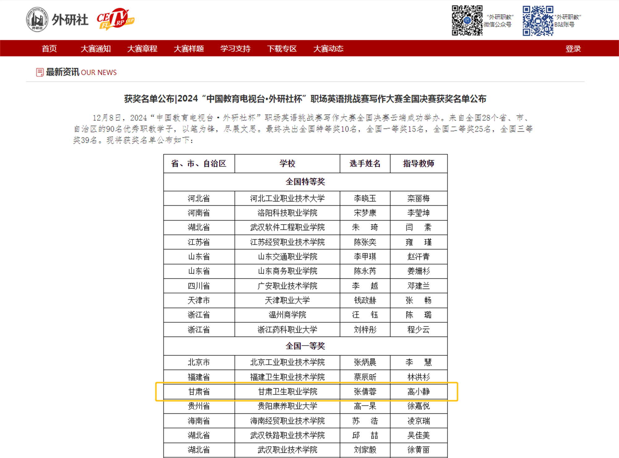 我校学生在2024“中国教育电视台·外研社杯”职场英语挑战赛全国决赛中喜获佳绩