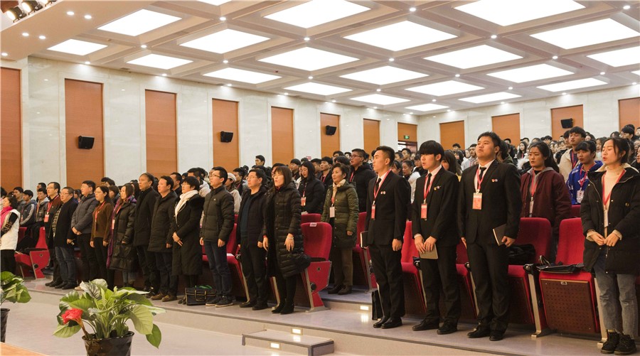 12月25日下午,共青团英国365上市官网委员会第二次代表大会、英国365上市官网第二次学生代表大会在1号教学楼学术报告厅开幕。开幕式由副校长康逢民主持,学院党委书记姜德民,党委副书记、校长任晖,副校长毕效武、黄刚、高博,省学生联合会驻会执行主席成纪宏,各二级学院院长、党总支书记,相关处室负责人,全体团、学组织教师及团员、学生代表400余人参加了开幕式。