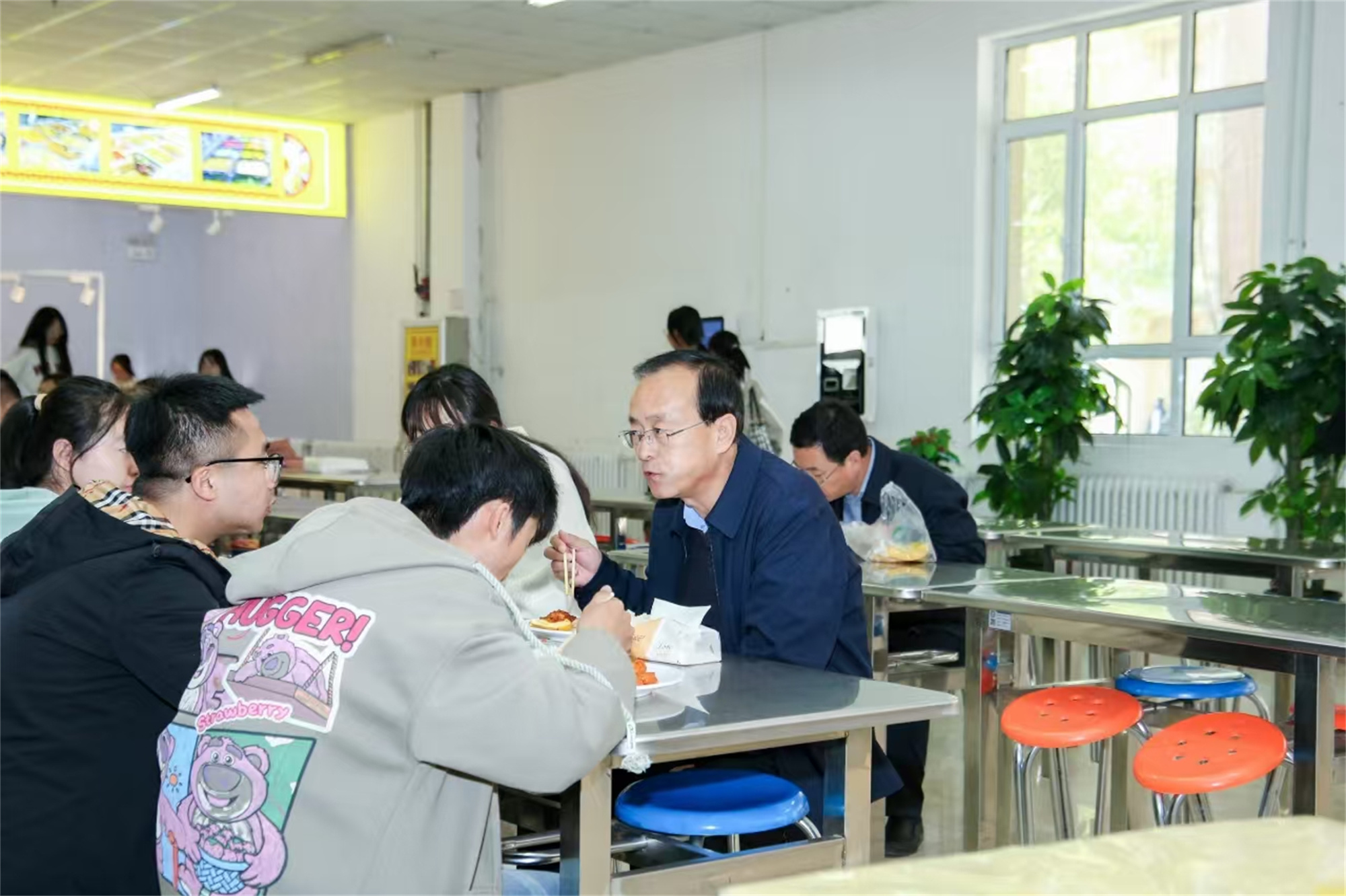 近日,党委书记包磊、纪委书记刘斌,副校长张军荣、杨频先后来到学生餐厅,了解检查食堂大厅就餐环境、饭菜质量及价格、餐饮保障、食品安全管理等情况,并与学生一起打饭就餐。