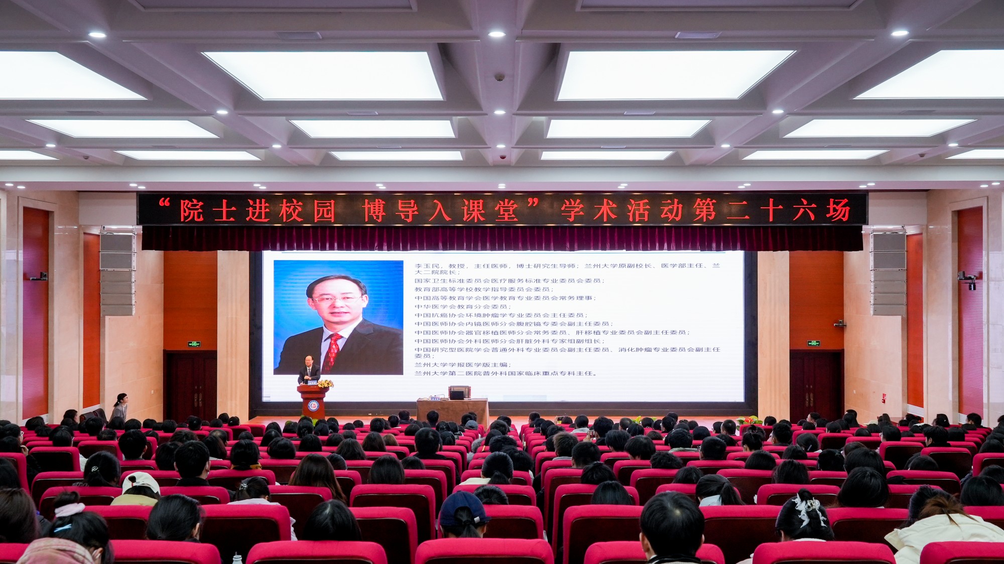 12月31日,学校科技讲坛“院士进校园 博导入课堂”系列学术活动第二十六场讲座在笃学楼多功能报告厅圆满举行。本次讲座特邀兰州大学萃英二级教授、主任医师、博士研究生导师、英国剑桥大学访问学者李玉民教授,为我校师生带来了一场以“厚德精医树人 博学笃行育才”为主题的学术盛宴。学校包磊书记、王建成校长、张军荣副校长及中青年教科研骨干教师、学生代表等400余人参加了此次讲座,活动由副校长张军荣主持。