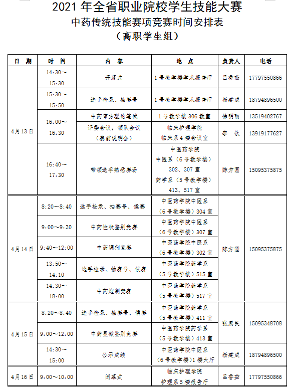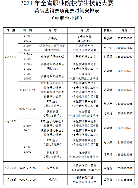 2021年全省职业院校技能大赛英国365上市官网赛点学生竞赛日程安排表
