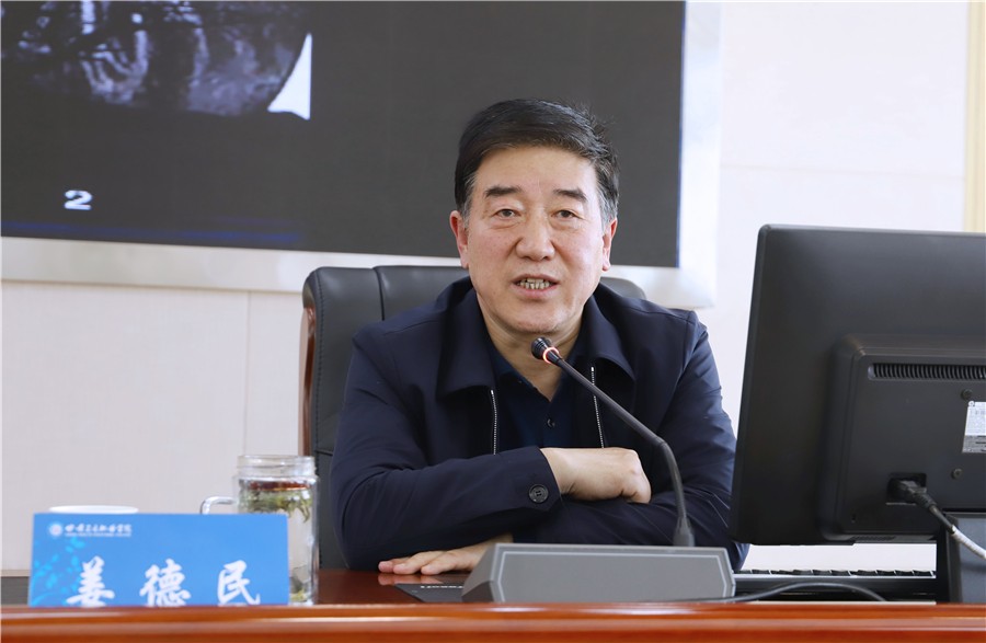 姜德民书记首先介绍了党史学习教育的背景和重要意义,随后以《南陈北李 相约建党》为题,从重要事迹、相约建党、思想巨人、光耀千秋四个方面讲述了陈独秀和李大钊两位革命先驱,在国家和民族的危难关头挺身而出,不畏艰难险阻将马克思主义思想火种在中华大地传播的感人事迹。