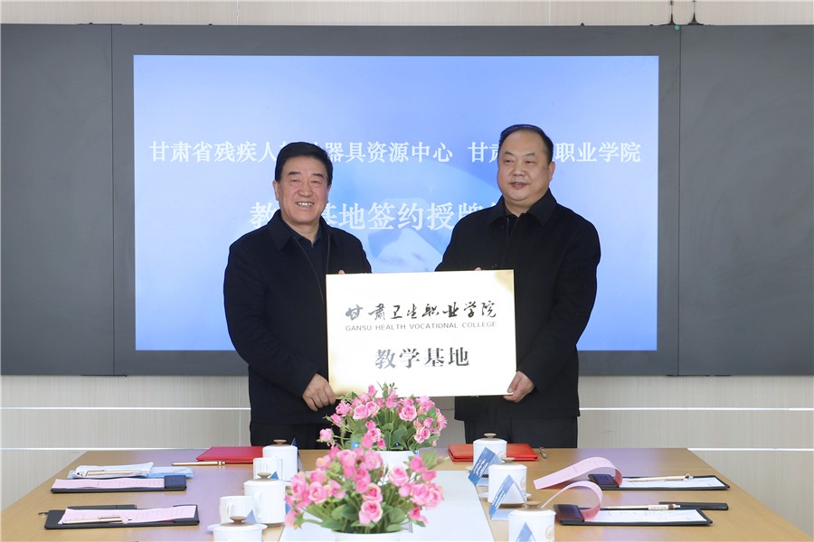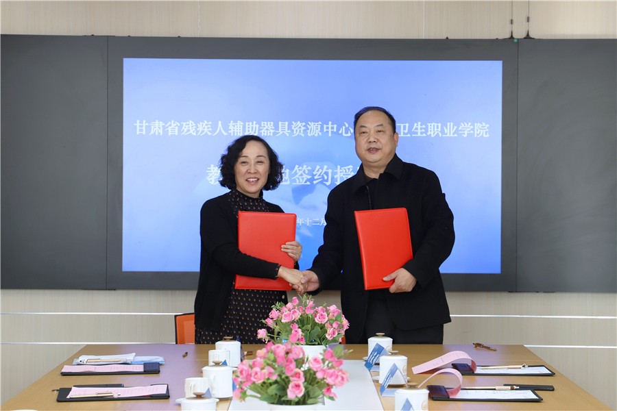 为进一步深化产教融合,充分发挥双方资源优势, 12月21日,我校与甘肃省残疾人辅助器具资源中心举行教学基地签约授牌仪式。党委书记姜德民、校长任晖、校领导黄刚以及甘肃省残疾人辅助器具资源中心党支部书记、中心主任王应良出席会议并签署合作协议,学校办公室、临床护理学院及甘肃省残疾人辅助器具资源中心等相关部门负责人参加会议。