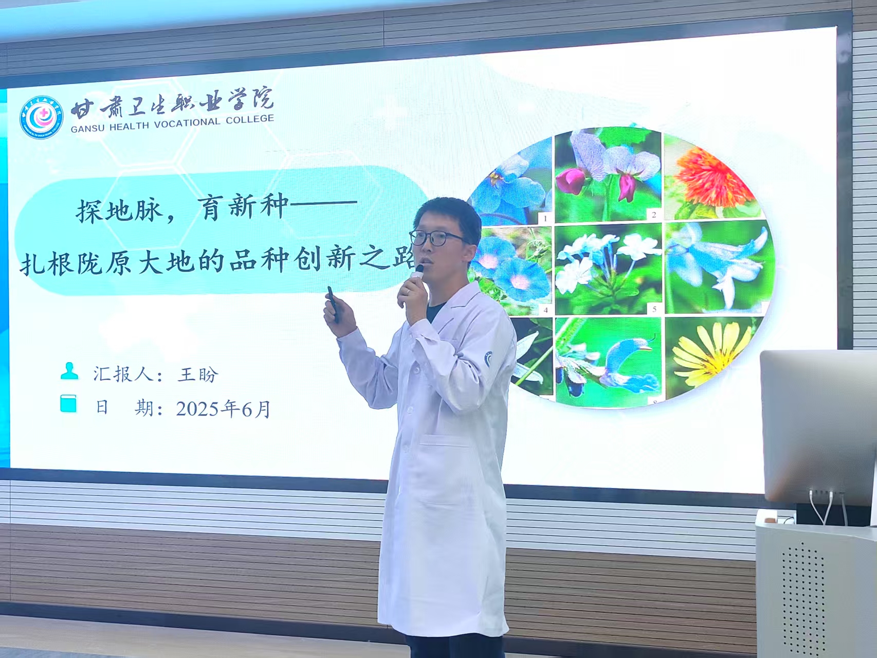 王盼博士以“探地脉,育新种——扎根陇原大地的品种创新之路”为主题,结合自身研究实践,生动讲述了中草药栽培与鉴定专业的发展背景、“松鸣一号”中药材新品种的培育过程与应用价值,分享了他在资源调研、田间试验、DUS测试及品种申报等环节中的体会与感悟,鼓励在场师生立足本土资源,坚守科研初心,推动中药材种业高质量发展。