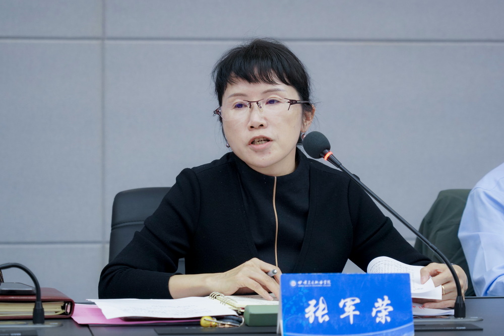 副校长张军荣提出制(修)订人才培养方案时应认真学习教育部相关文件精神,并主动对接目前的就业形势,以促进学生成长为根本宗旨,积极思考教育教学的改革方向。