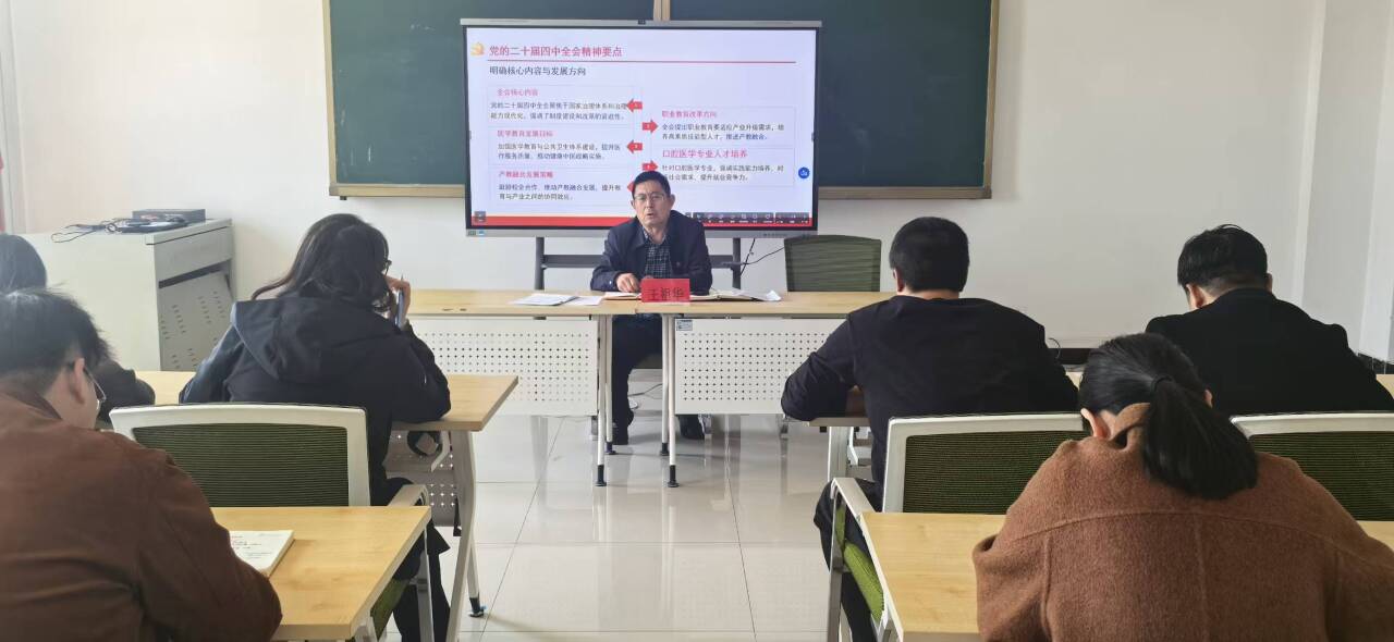 10月30日中午13:00,口腔医学院于扁鹊楼517会议室开展党总支书记讲党课活动,全体党员参会。本次党课以“学习宣传贯彻党的二十届四中全会精神——‘十五五’时期经济社会发展主要目标”为核心,紧扣“职业教育与产教融合实践”展开解读。