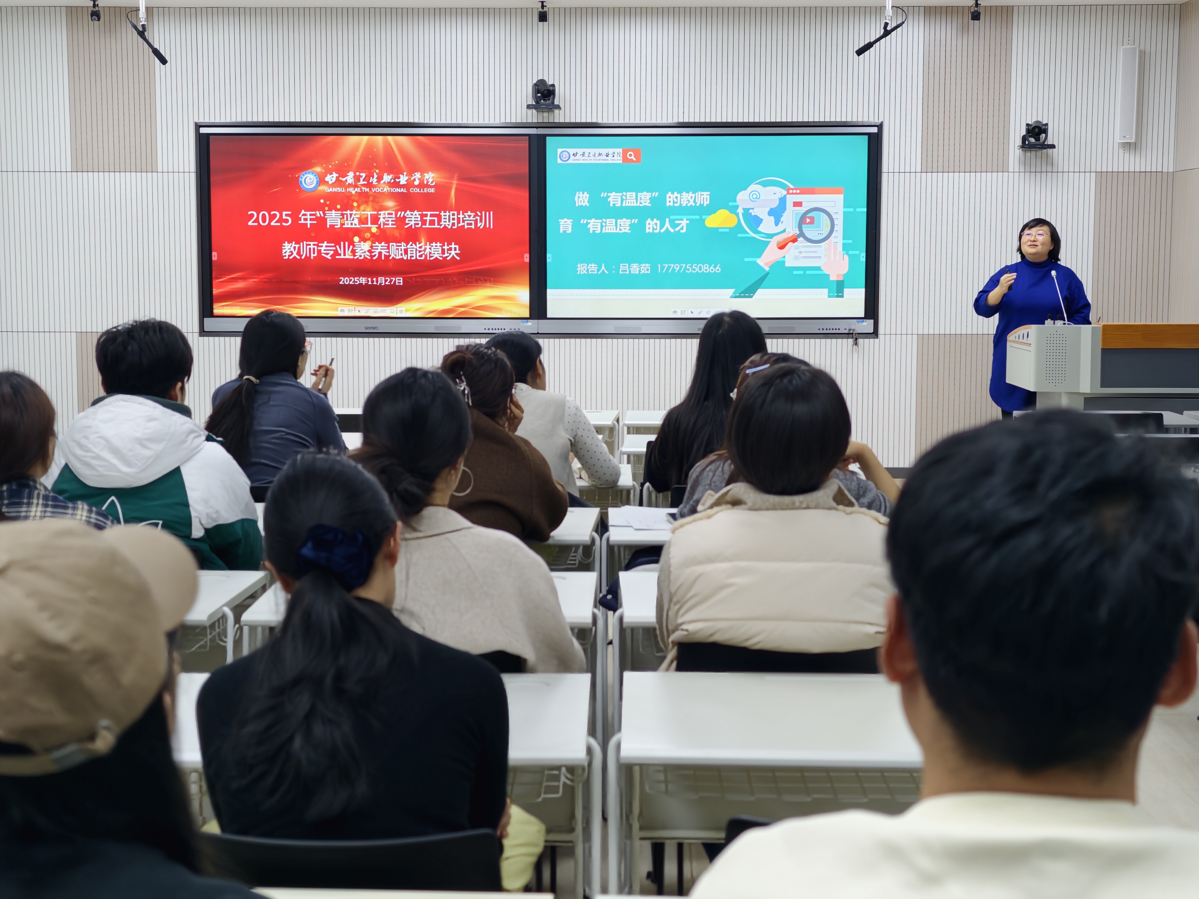2025年11月27日下午,学校“青蓝工程”第五期青年教师培训“教师专业素养赋能”模块在教师发展中心开讲。