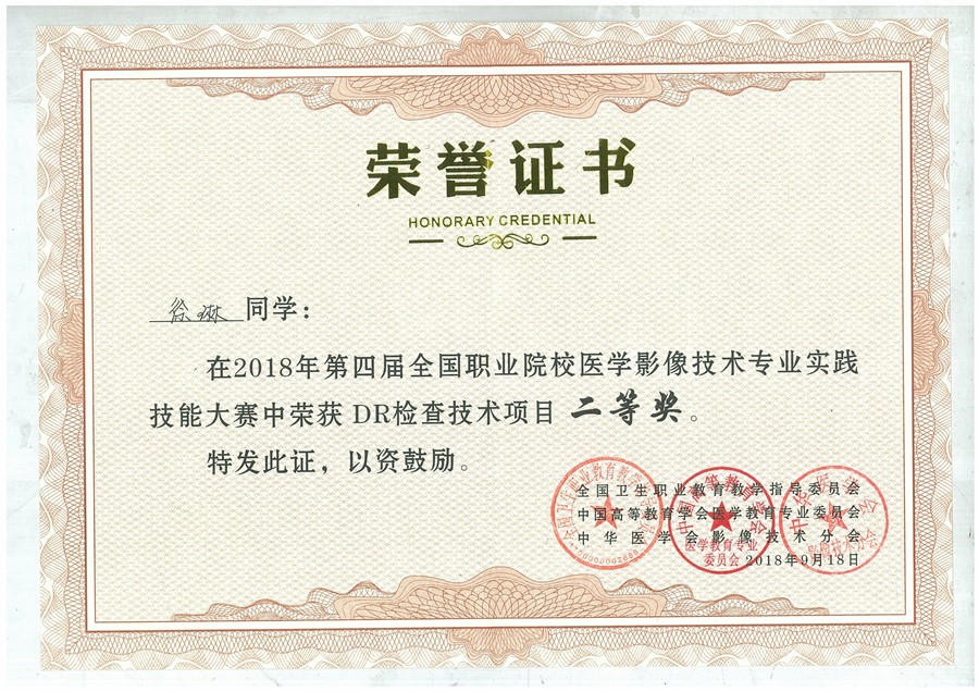 医学影像系学生参加第四届全国职业院校医学影像技术专业实践技能大赛喜获佳绩