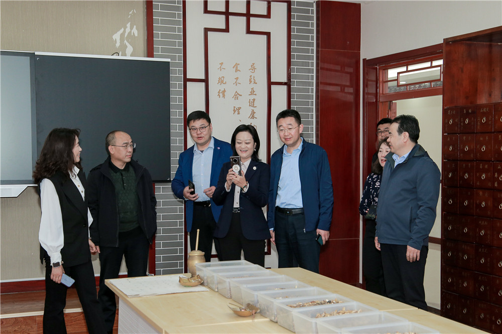 会后,与会人员参观了中医药学院实训中心,饶有兴致地旁听了正在进行的经络与腧穴等相关实训课程,对实训中心现代化、信息化的设备及极具人文气息的中医药文化氛围给予了肯定,共同探讨了中医药教学、实践等相关内容。