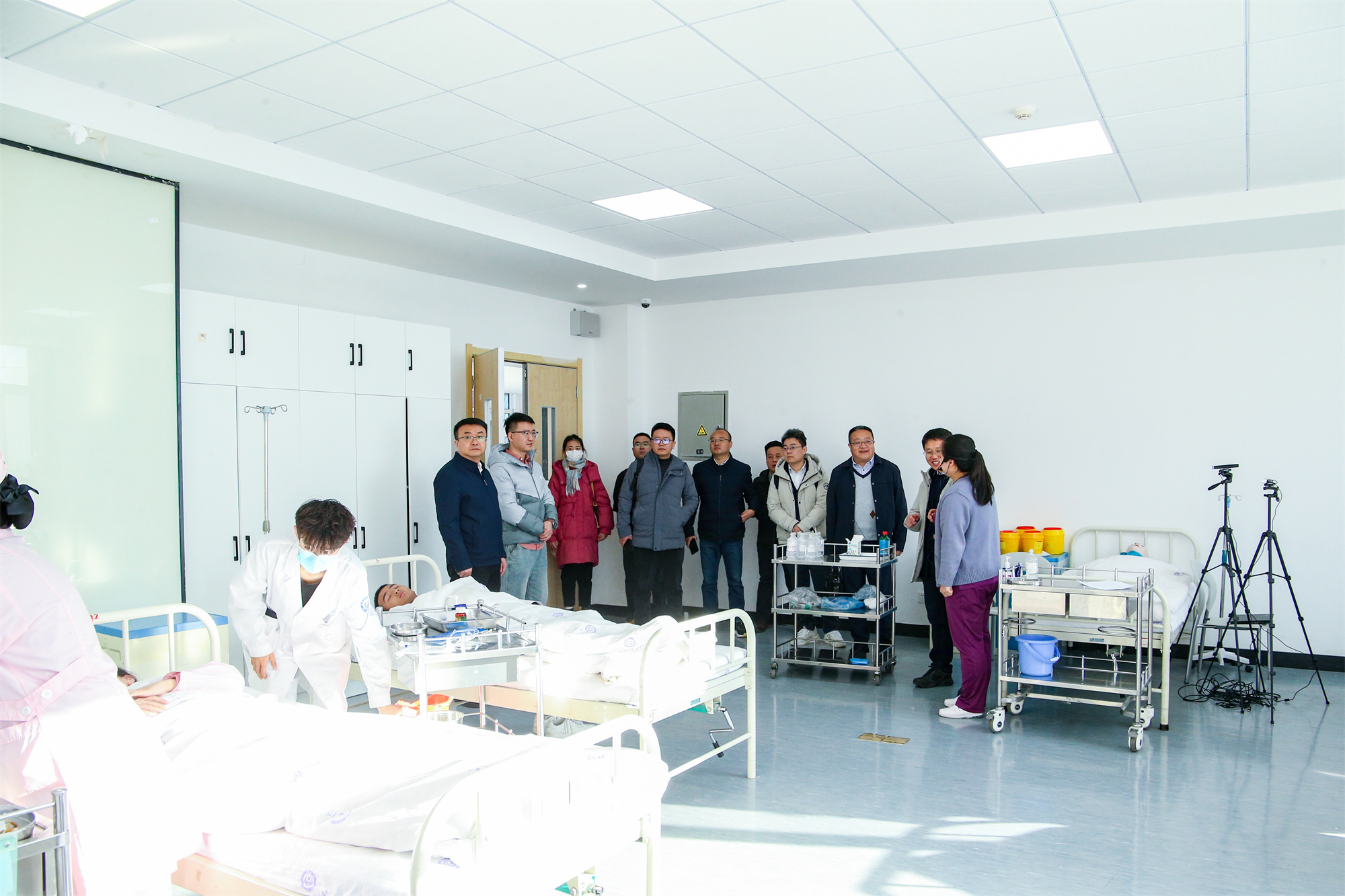 活动分为两个阶段。第一阶段,企业代表参观了护理实训中心,对护理学院各专业实训课的开展情况、实训中心的建设及其功能应用进行了深入了解。在参观过程中,来访嘉宾一行还饶有兴致地旁听了正在进行的护理实训课,对学院各项工作给予了肯定。