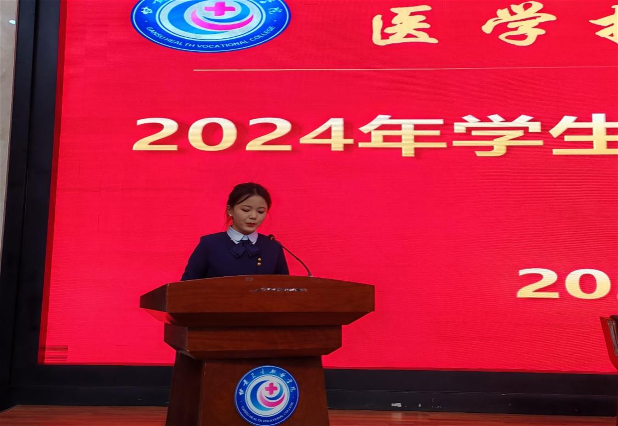 2023级医学影像技术三年制31班石元晶同学作为获奖学生代表发言。石元晶同学就思想政治、学习成绩、社会实践等方面作了汇报,表达了对获得国家励志奖学金、三好学生等荣誉的感恩和激动。同时她表示,在今后的学习道路上,会继续带着这份荣誉和责任砥砺前行,不断提升并成就更好的自己,发挥榜样力量,勇担社会责任,为实现自己的奋斗梦想、为学校的发展、为国家的繁荣而努力奋斗。