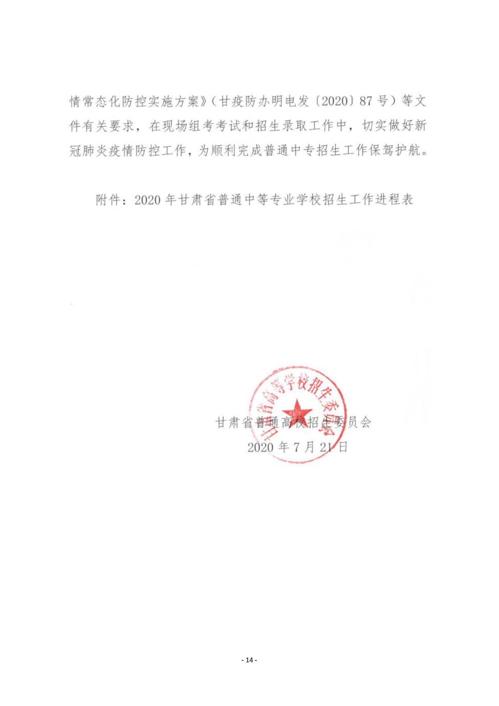关于2020年甘肃省中等专业学校招生工作的通知[甘招委发26号]