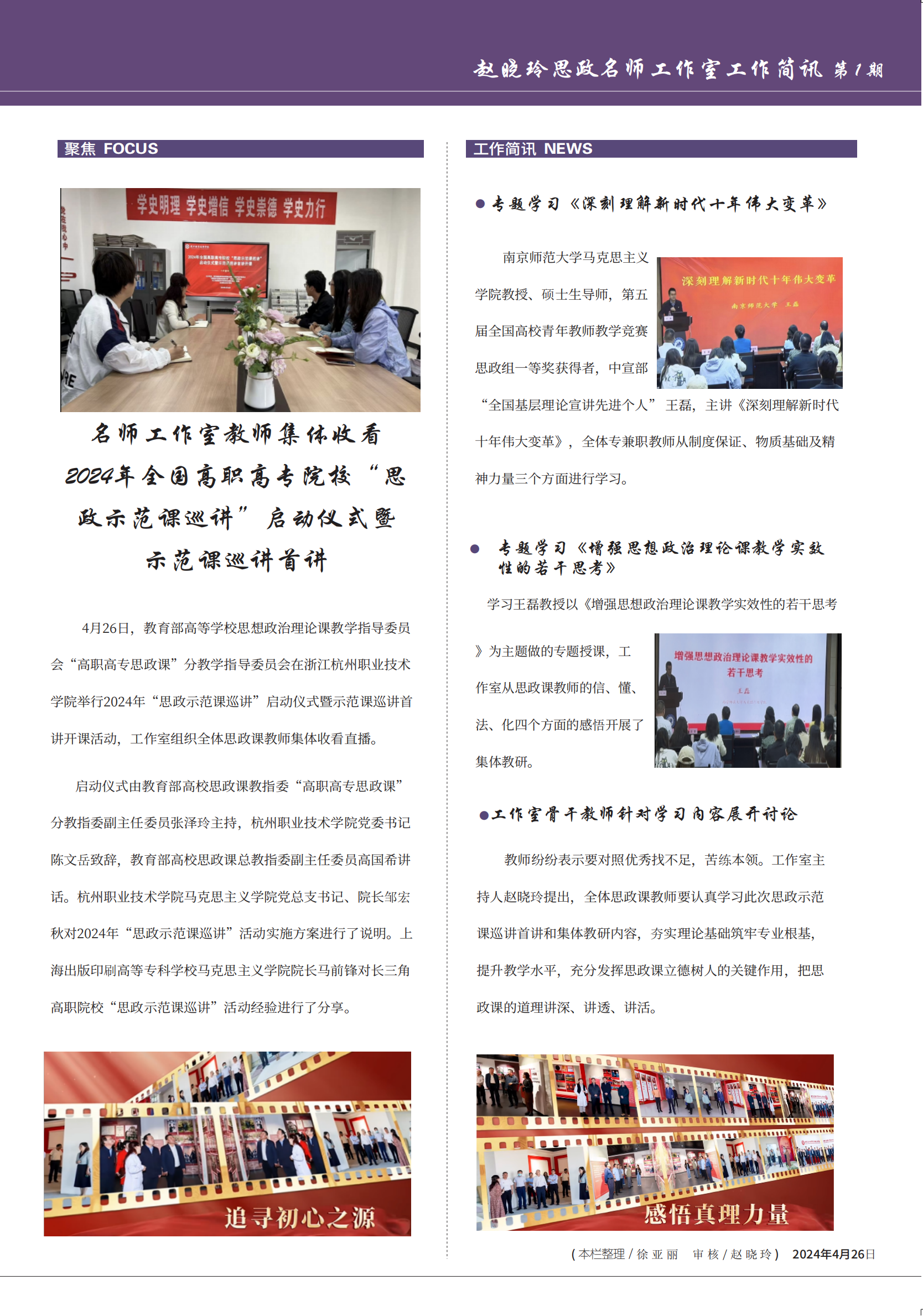 赵晓玲思政名师工作室工作简讯 第 1 期