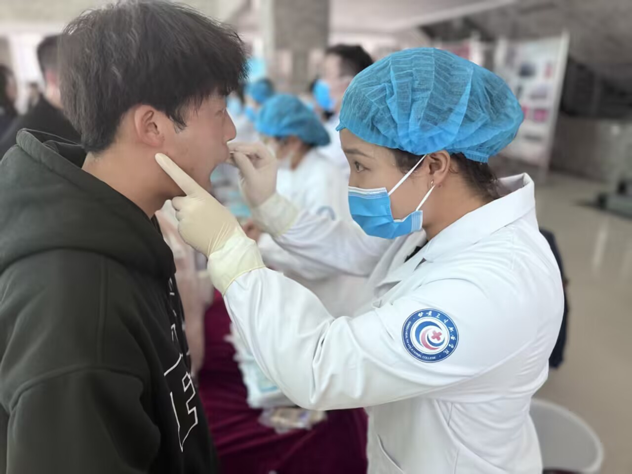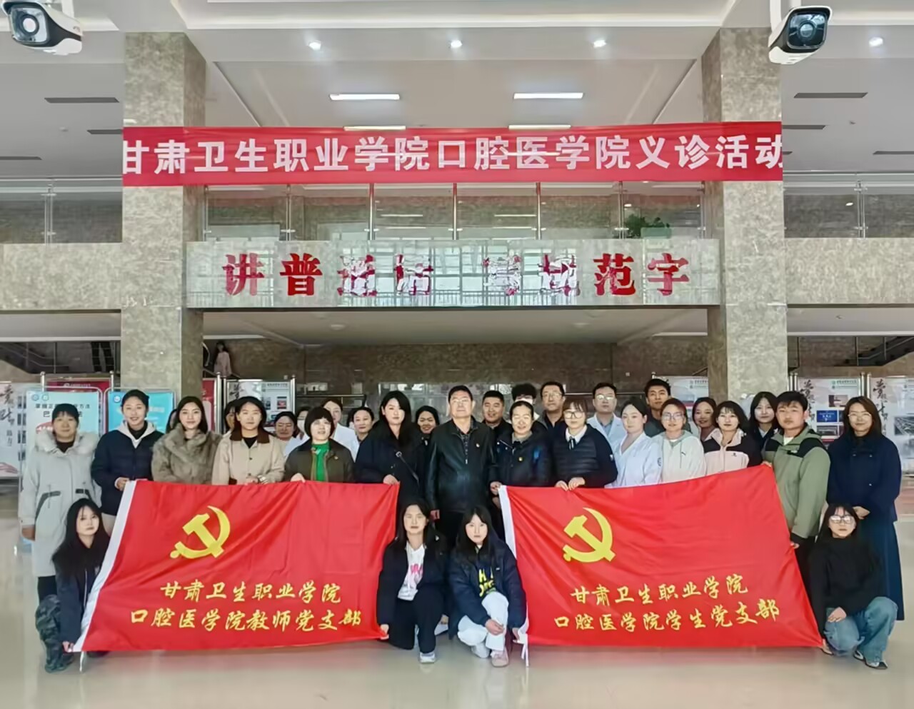 为深化基层党组织建设,推动党建与专业服务深度融合,2025年3月18日下午,口腔医学院教师党支部与甘肃财贸职业学院机关第五党支部联合开展"党建引领护健康 校际携手惠师生"主题党日活动。双方党员教师及学生志愿者共同为甘肃财贸职业学院600余名师生提供口腔健康科普宣讲与义诊服务,以专业力量践行党员初心使命。
