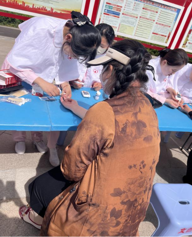 本次活动包括妇科健康专题讲座和免费健康检测服务两部分。护理学院师生为各位居民普及关于妇科疾病的预防与治疗、女性日常保健知识,并现场解答疑问。随后为居民提供免费血压、血糖测量,共服务老人52位,筛查出血压、血糖异常15例,并根据检测结果给予了针对性健康指导建议。