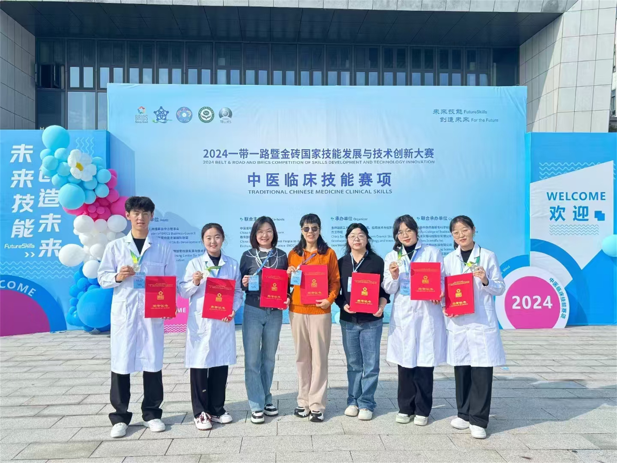 11月8日至10日,在安徽芜湖举行的“2024一带一路暨金砖国家技能发展与技术创新大赛”中医临床技能赛项中,学校中医学院选派的张靖、毛茜雅、王轹文、康化彤四位学生,凭借扎实的专业技能和出色的临场发挥,荣获大赛二等奖,学校获得优秀组织奖,四位指导老师荣获优秀指导教师。