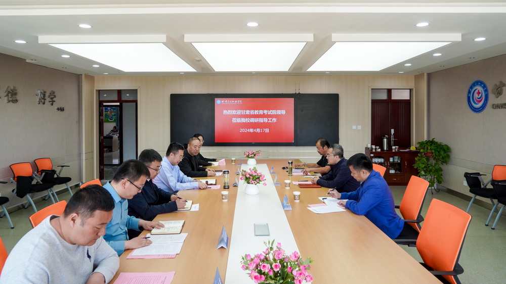 4月17日,甘肃省教育考试院党委委员、副院长张永,社会考试处处长薛智强,社会考试处二科科长马元让来学校调研指导社会化考试考点建设和业务开展情况。学校党委副书记、校长王建成出席调研座谈会,科研处、教务处、信息中心等职能部门工作人员和教师代表参加座谈会。会议由学校党委副书记毕效武主持。