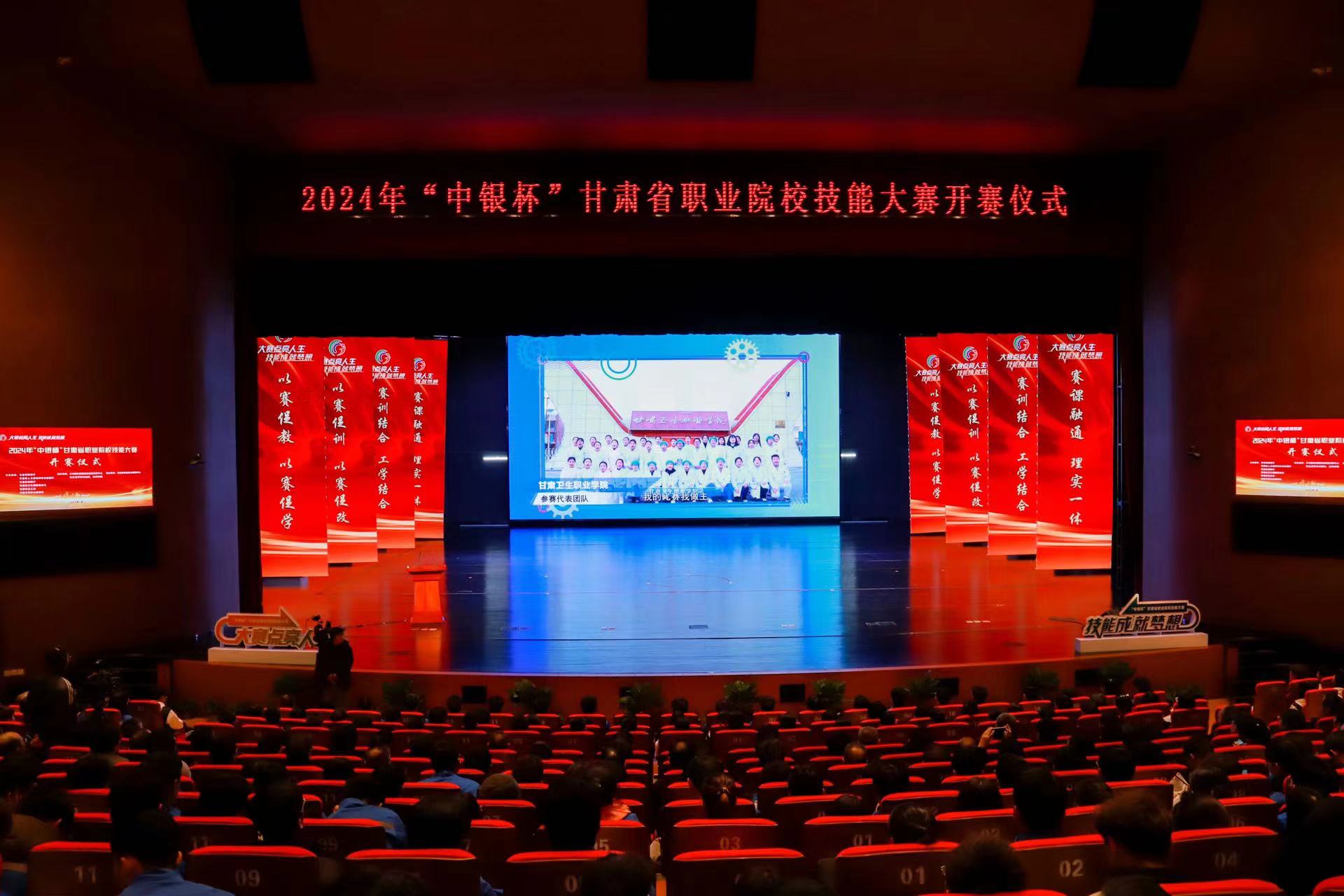 与会领导共同推动拉杆,“2024‘中银杯’甘肃省职业院校技能大赛”的卷轴徐徐拉开,2024年省赛正式开赛!