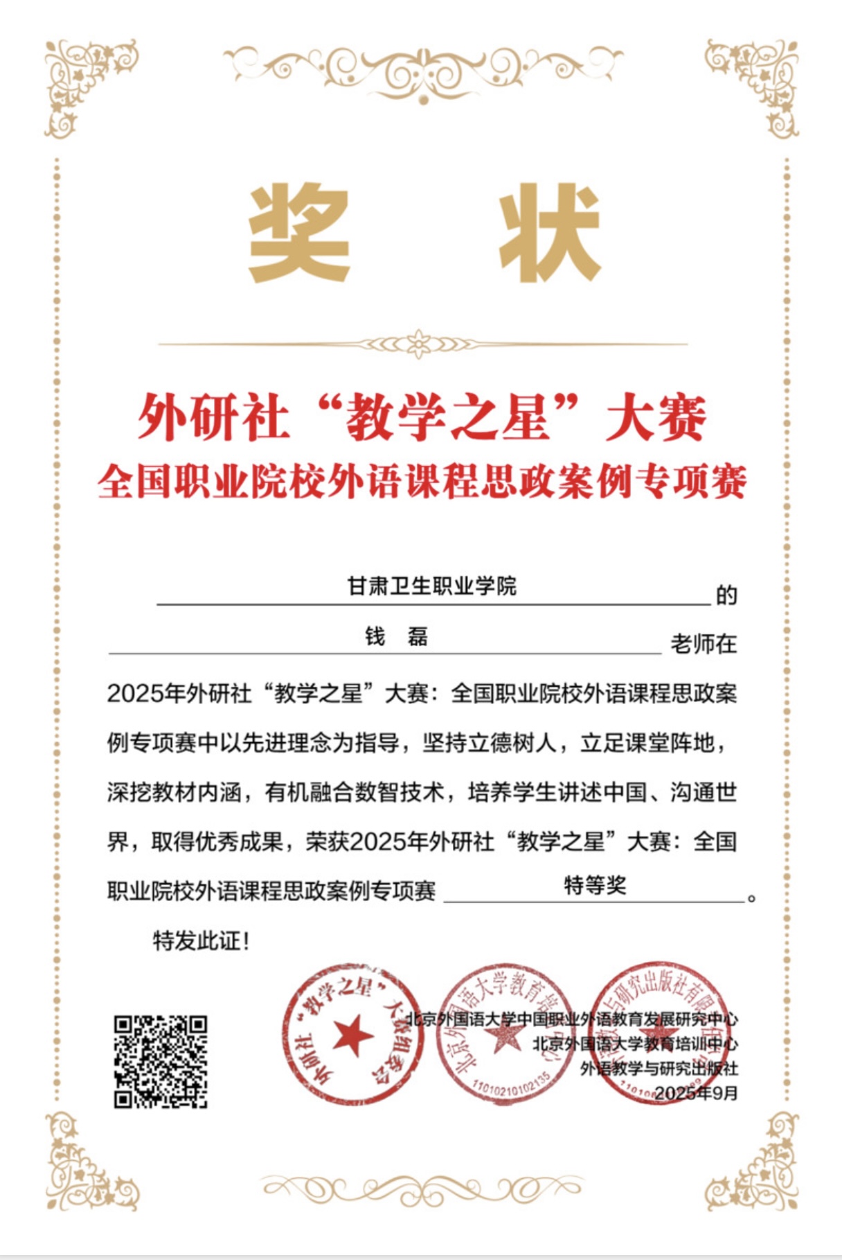 喜报!我校公共教学部教师在2025外研社“教学之星”大赛中斩获佳绩