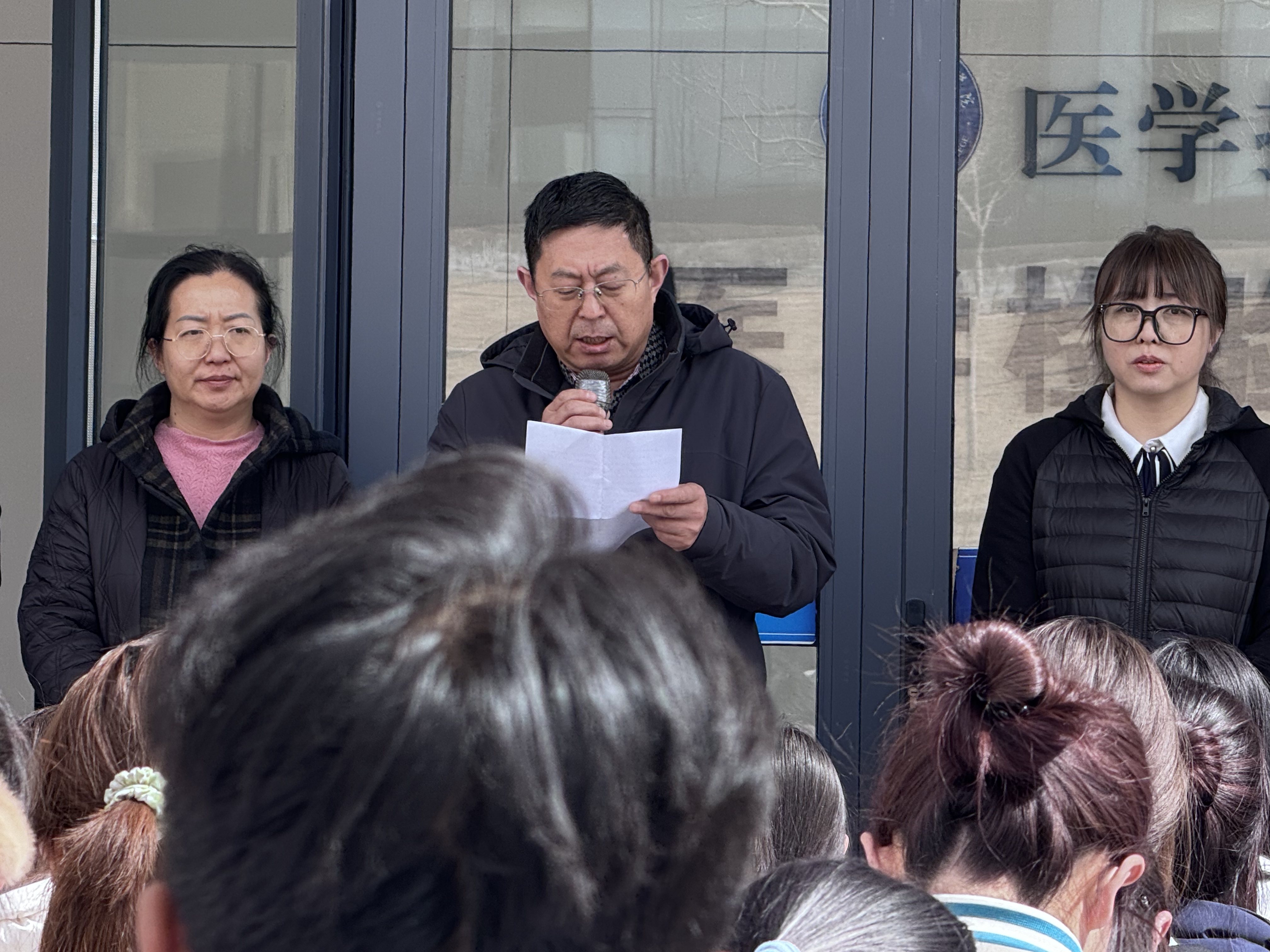 学院党总支书记王祖华在启动仪式中讲解了植树节的由来和意义,并强调保护生态环境的重要性,引导医学生树立"尊重生命、守护健康"的职业价值观,并鼓励同学们积极参与环保行动,以“小生态”感受“大生命”。