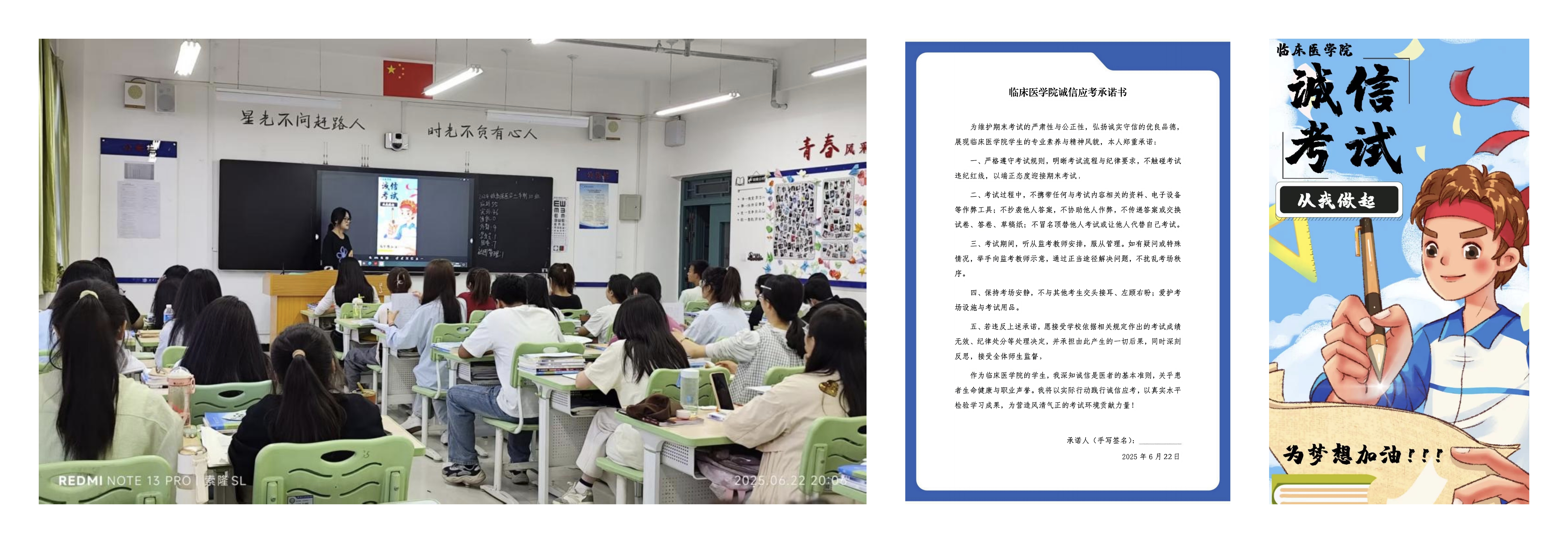 为树立诚信考试意识,营造良好的考风学风,临床医学院于2025年6月22日在各在校班级教室开展“诚信应考”主题班会活动,全体同学积极参与,反响热烈。