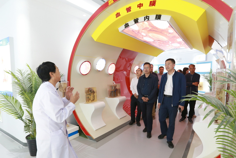 朱宗斌一行先后来到学校生命科学馆,临床护理学院母婴护理实训基地、老年人照护生活馆、老年护理实训基地,马克思主义学院红色实践教学基地,信息中心智慧互动教室、课工场、快课工坊等场所,深入了解学校建设及发展情况,并听取了关于学校办学主要特色及成果方面的情况介绍。