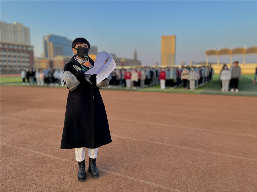升旗仪式最后,校团委书记衡冰发表了主题为《用习近平总书记关于青年工作的重要思想指引我们成长》的讲话,她强调我校全体团员青年要从三个方面树立理想信念:一是以回溯初心为主题,增强红色文化教育,坚定共产主义理想信念;二是以担当使命为旨归,深刻领会新时代的精神内涵,提升社会责任感;三是以自觉践行为目标,以社会主义核心价值观为指导,勤于实践,勇于实践。她号召全体团员青年要在党的领导与号召下,坚定理想信念,加强德行修养,增强本领能力,将自己的成长成才与祖国的前途命运紧密联系在一起,以社会主义建设者和接班人的使命担当,为全面建设社会主义现代化国家、实现中华民族伟大复兴而努力奋斗。