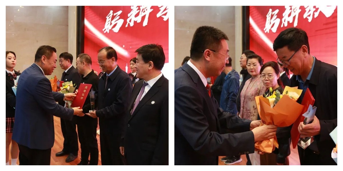 包磊、王建成为姜德民、任晖等逾30年教龄教师颁发荣誉证书和纪念奖杯,以表达对老教师们最诚挚的敬意和最美好的祝愿,感谢其为学校发展做出的贡献。