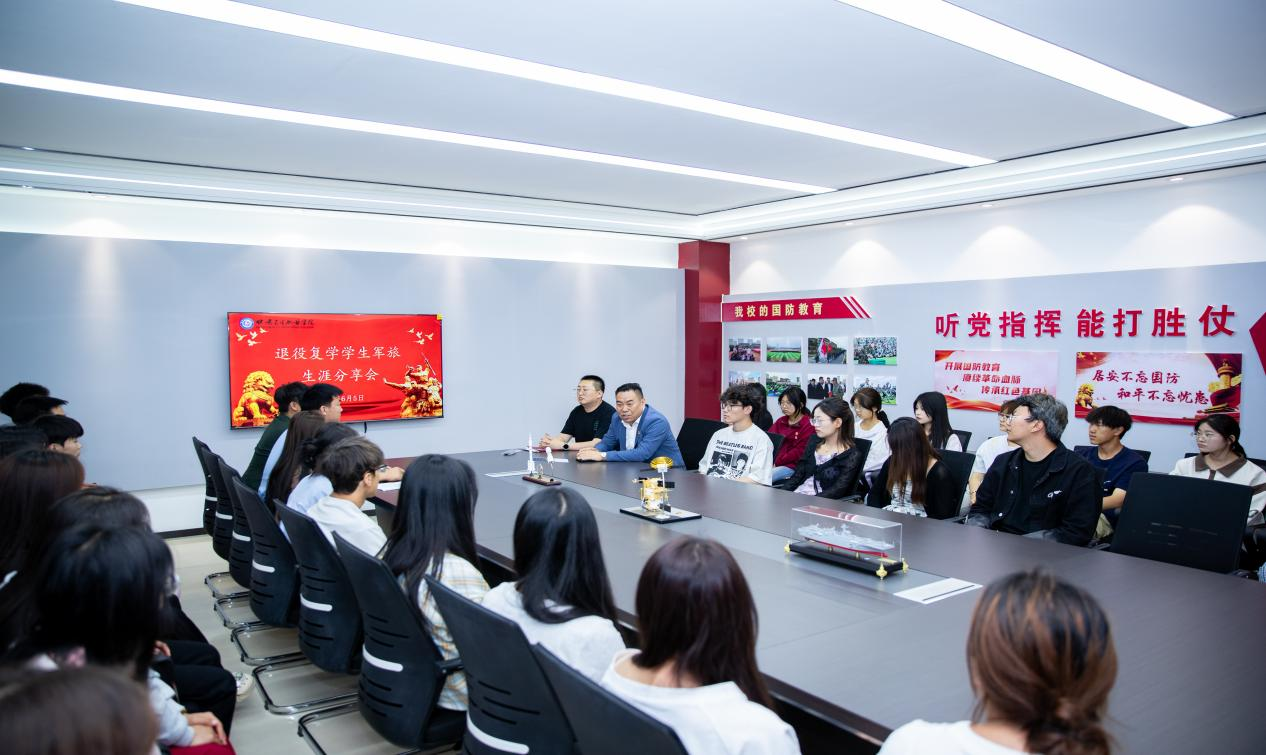 包磊书记在会上寄语广大学子,希望大家以这些优秀退役复学学生为榜样,将青春热血融入国防事业。此次分享会为同学们搭建了一个与退役士兵近距离交流的平台,现场气氛热烈,点燃了学子们参军报国的壮志豪情,也在校园中营造出了崇军尚武的浓厚氛围。