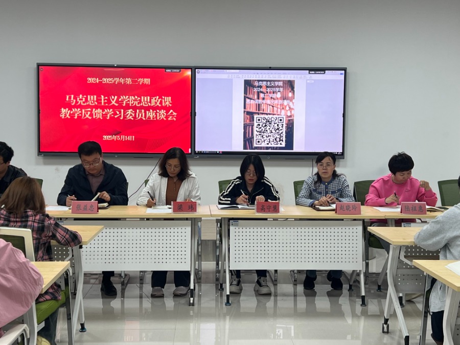 为全面贯彻落实习近平总书记关于学校思政课建设的重要指示批示精神,深入了解学院思政课教学情况,进一步提升思政课教学质量。5月14日,马克思主义学院在精诚楼502教室召开2024-2025学年第二学期思政课教学质量反馈座谈会。学校评估审计处处长梁玮、教务处干事高守慧受邀出席会议,学院班子成员、教研室主任、教科研干事、各专业班级80余名学委参加座谈会。