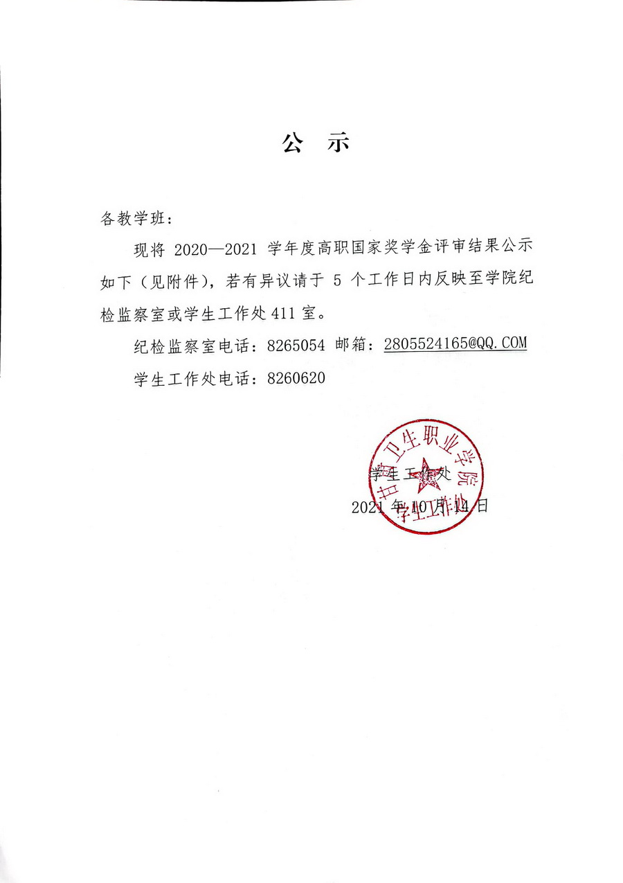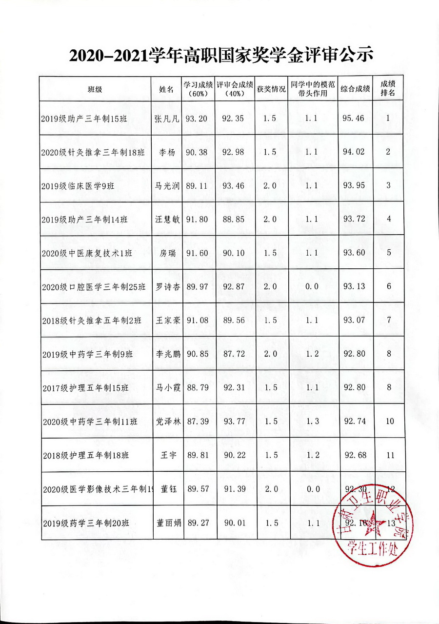 英国365上市官网2020-2021学年高职国家奖学金公示
