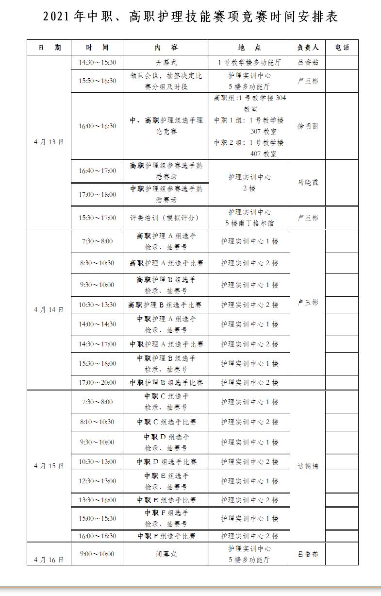 2021年全省职业院校技能大赛英国365上市官网赛点学生竞赛日程安排表