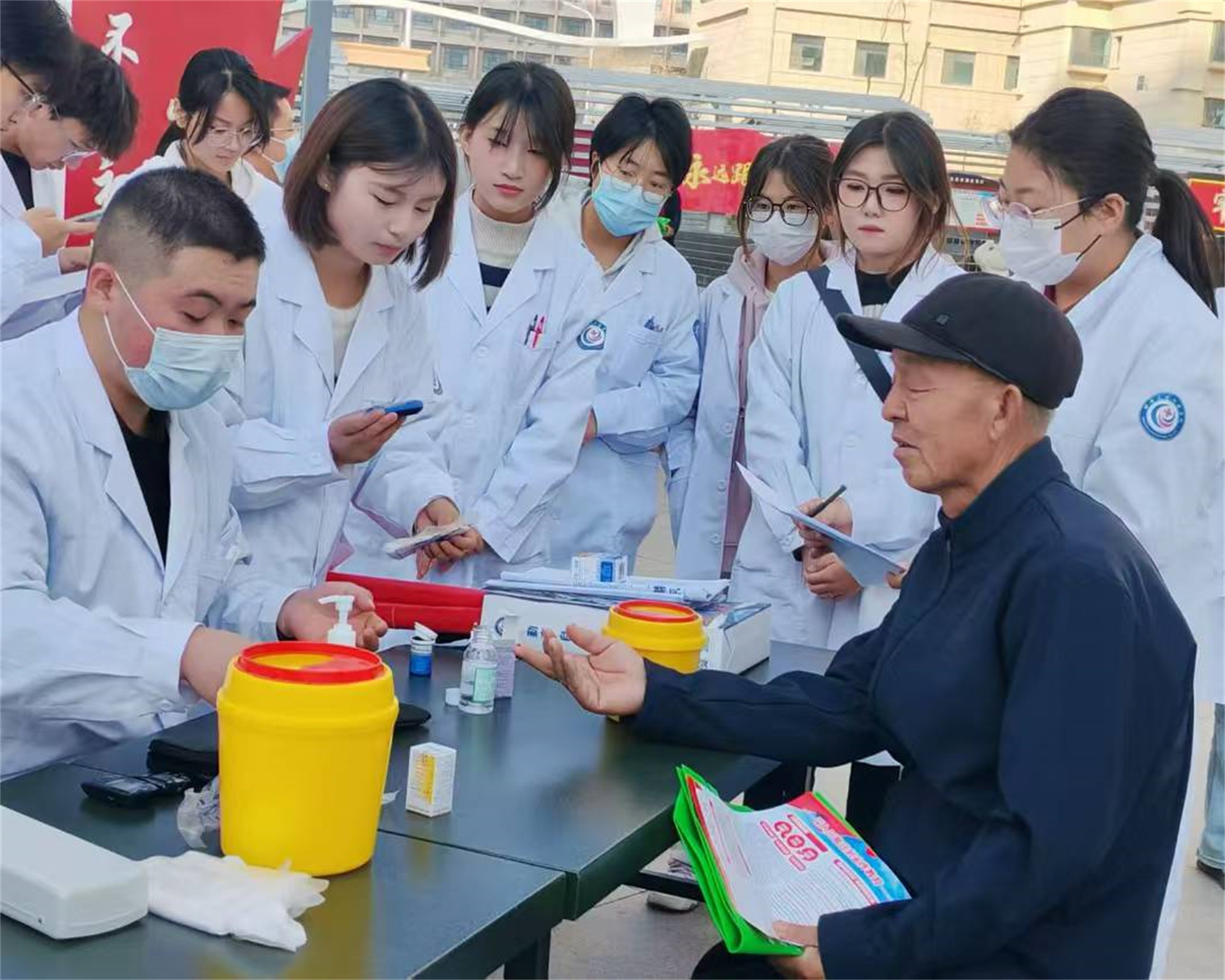 此次活动得到了文曲社区党支部的大力支持,活动中,老师和学生围绕世界慢阻肺日主题“认识你的肺功能”和联合国糖尿病日主题“糖尿病与幸福感”为社区居民开展了健康讲座。在小区广场,学生们为居民测量血压、检测血糖,耐心解答居民们的健康问题。并在小区工作人员的带领下,为行动不便的居民提供上门服务。