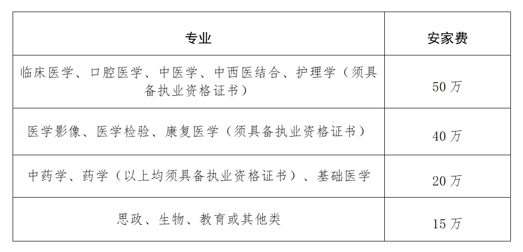 5.根据学校发展需要,引进的博士研究生按照学科专业门类给予相应安家费,详见下表。