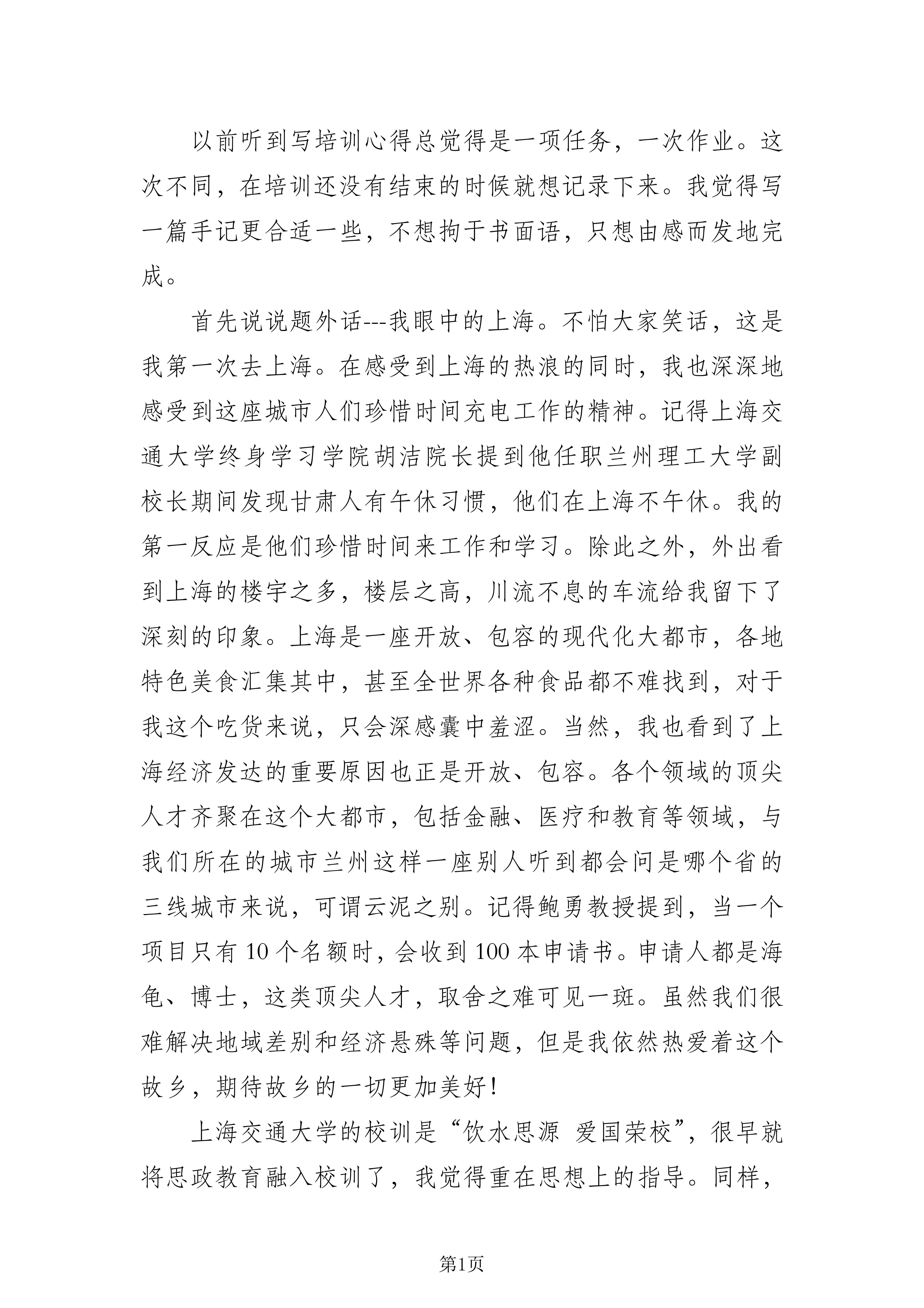 【上海交通大学培训心得】高小静:书山有路勤为径 学海无涯苦作舟