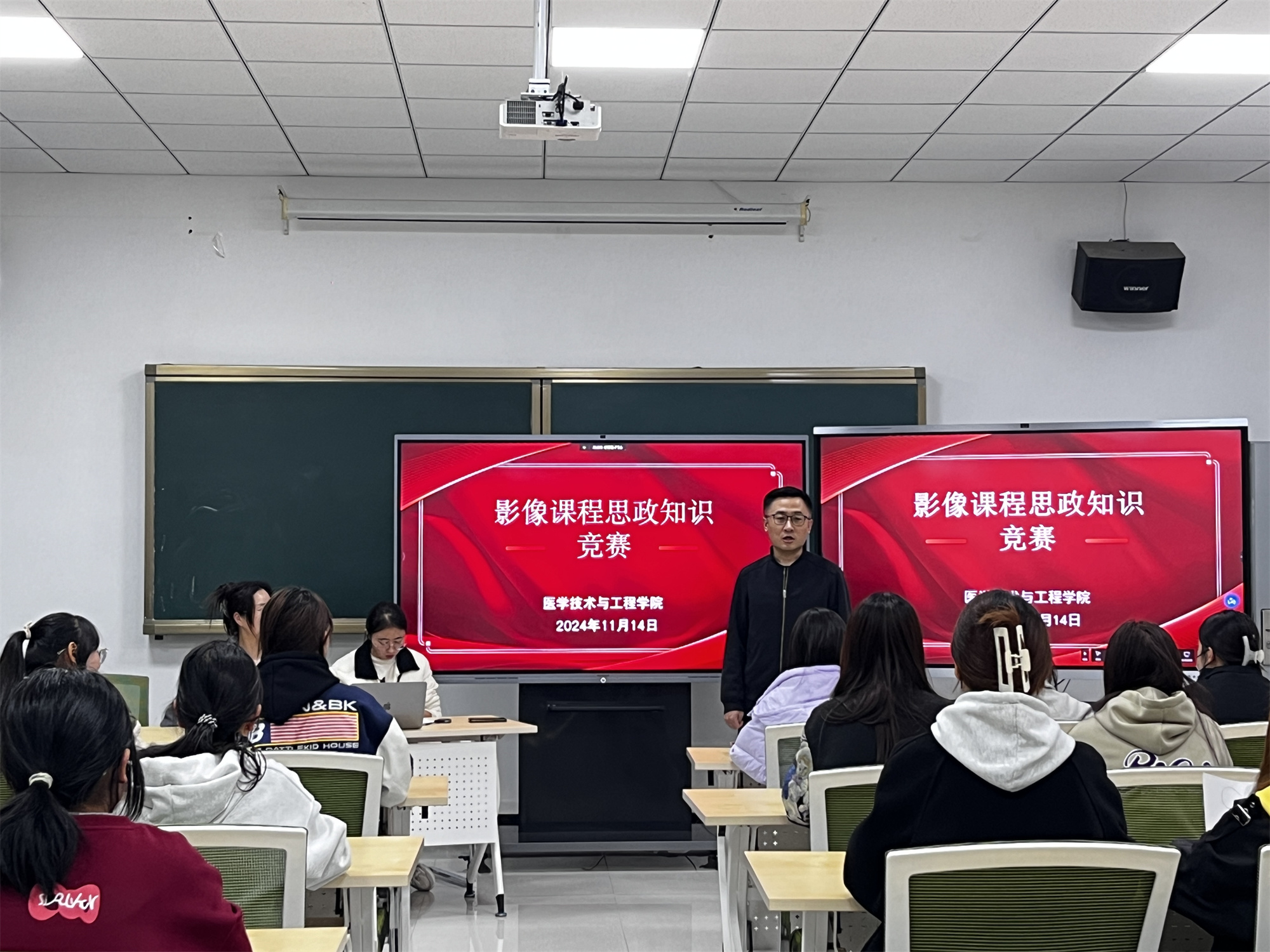 11月14日晚,医学技术与工程学院开展了2024年“11·8国际放射日”系列活动之——影像课程思政知识竞赛。