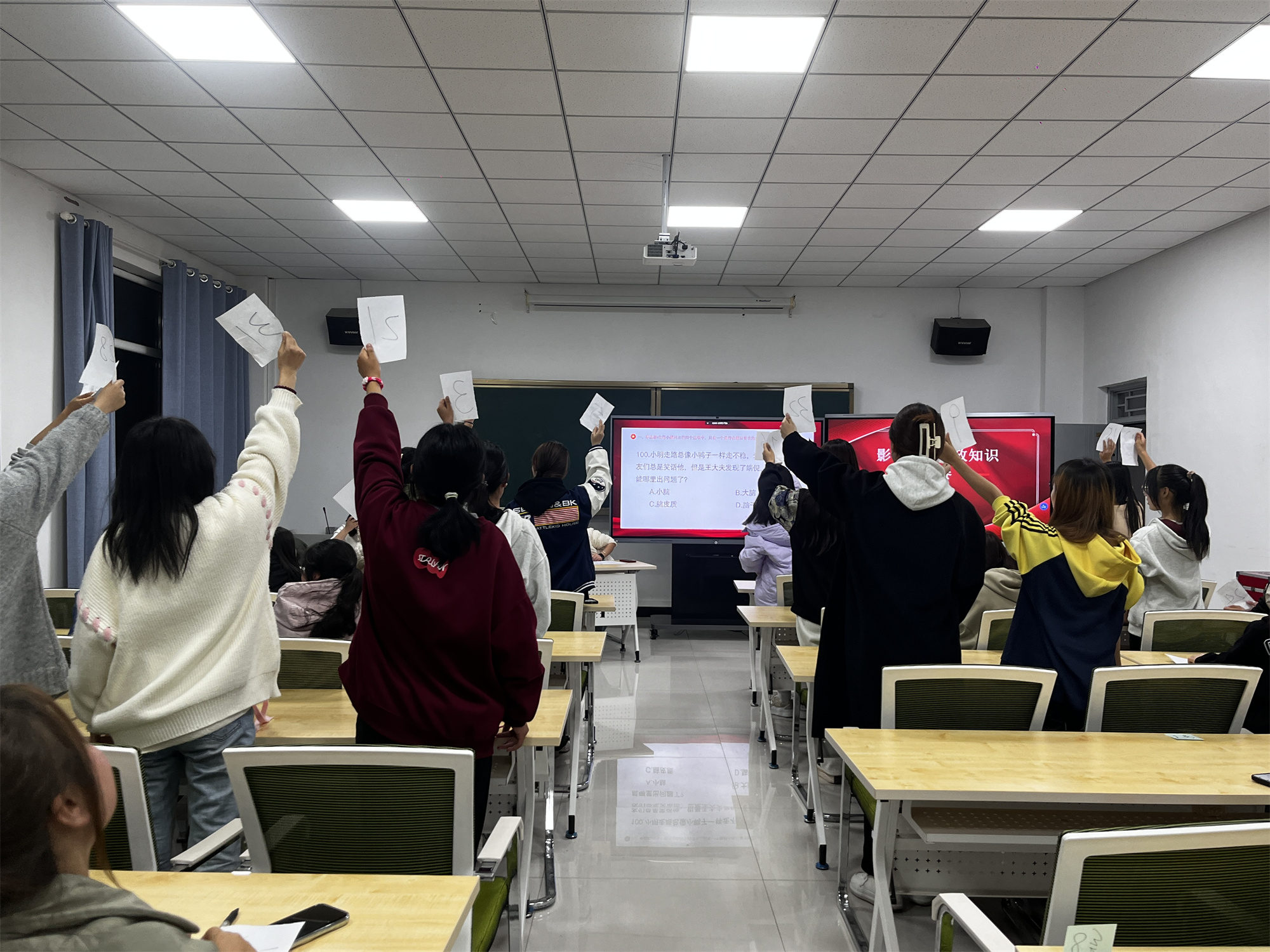 活动由影像教研室吕俊宏老师主持,共有32名选手组队参加最后的角逐,另有21名同学观赛。竞赛内容包含100道融合思政元素的影像专业题目及部分趣味问答题。选手们摩拳擦掌、跃跃欲试,赛场氛围高涨。在一番激烈的角逐下,一名个人和三支参赛队伍脱颖而出,分别获得个人一等奖和优秀团体奖。
