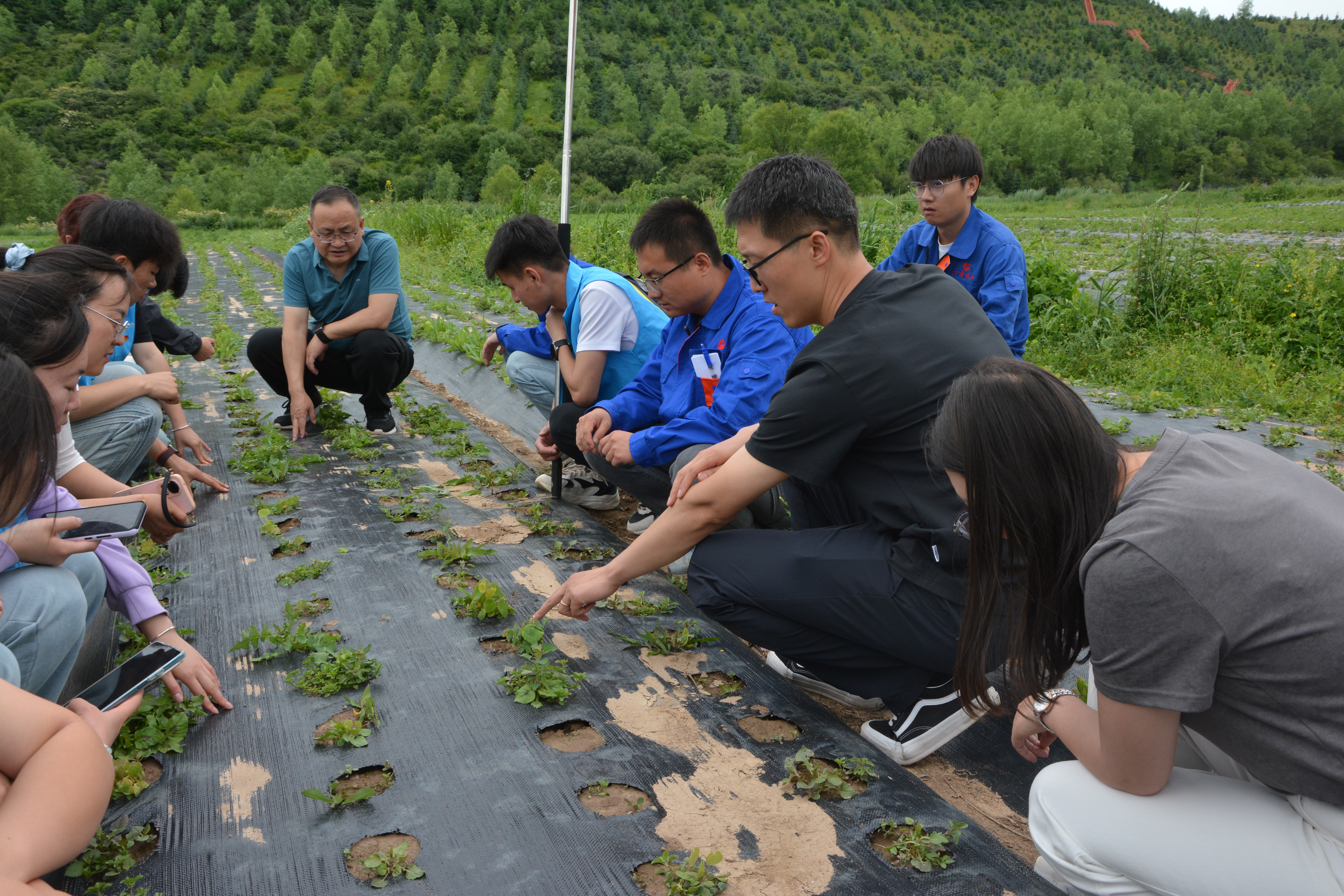 活动中,师生们深入田间地头,在当归、党参、淫羊藿等中药材种植区,围绕种子选种、育种、栽培、田间管理等方面,对甘肃陇神中药材有限公司的工作人员进行了技术指导和交流探讨;药学院专业教师结合植物形态、生长、病害防治等知识,为学生现场讲解中药材植物学知识要点,并带领学生在中药材种植田清除杂草。在甘肃药业集团陇神中药材加工车间,师生全方位参观了清洗、烘干、切片、炮制、包装等中药材从原料到中药饮片的生产流程,并对加工生产过程中药材质量控制体系的架构、传统炮制方法和工艺的研究、现代化和数字化设备的改造应用进行了指导和探讨。在元古堆村文化广场,学生们通过现场讲解,向村民普及中药养生知识、辨识常见药材,用通俗易懂的语言讲述中药文化传承故事,激发村民对本土中药材产业的认同感,让中医药文化“飞入寻常百姓家”。