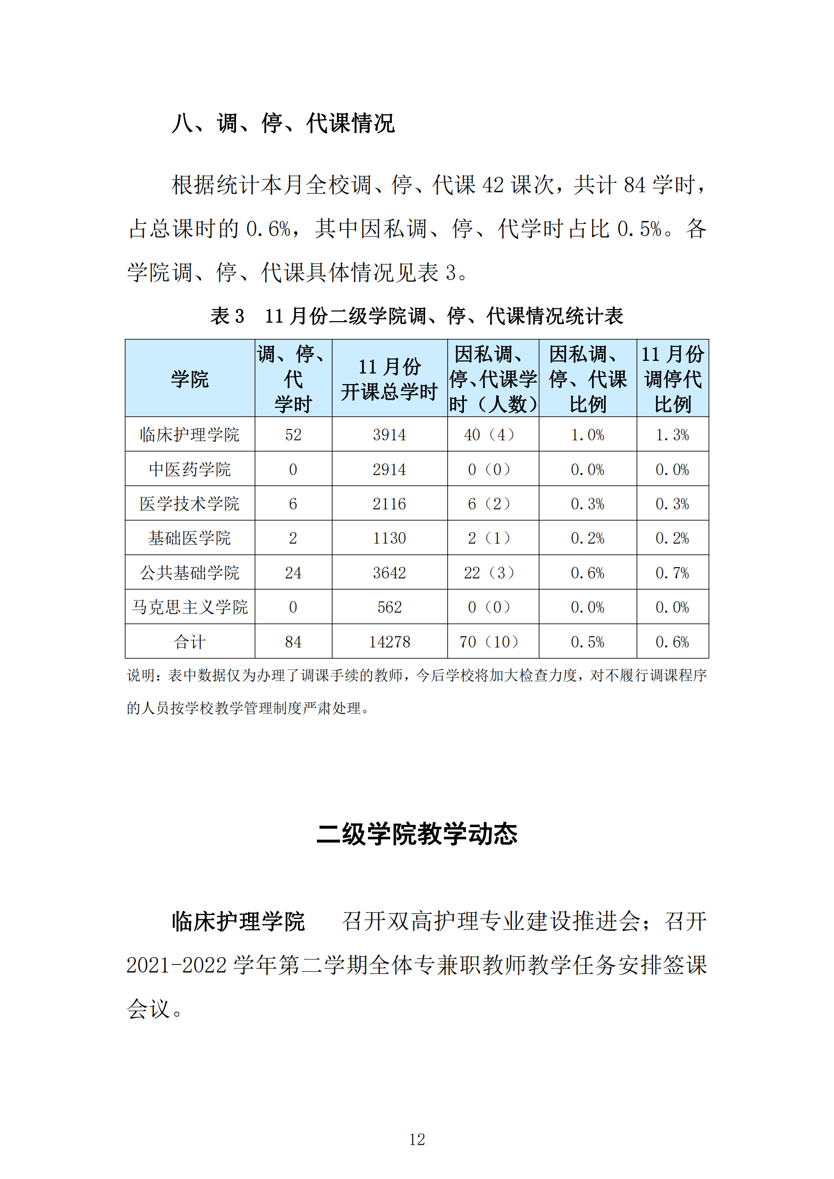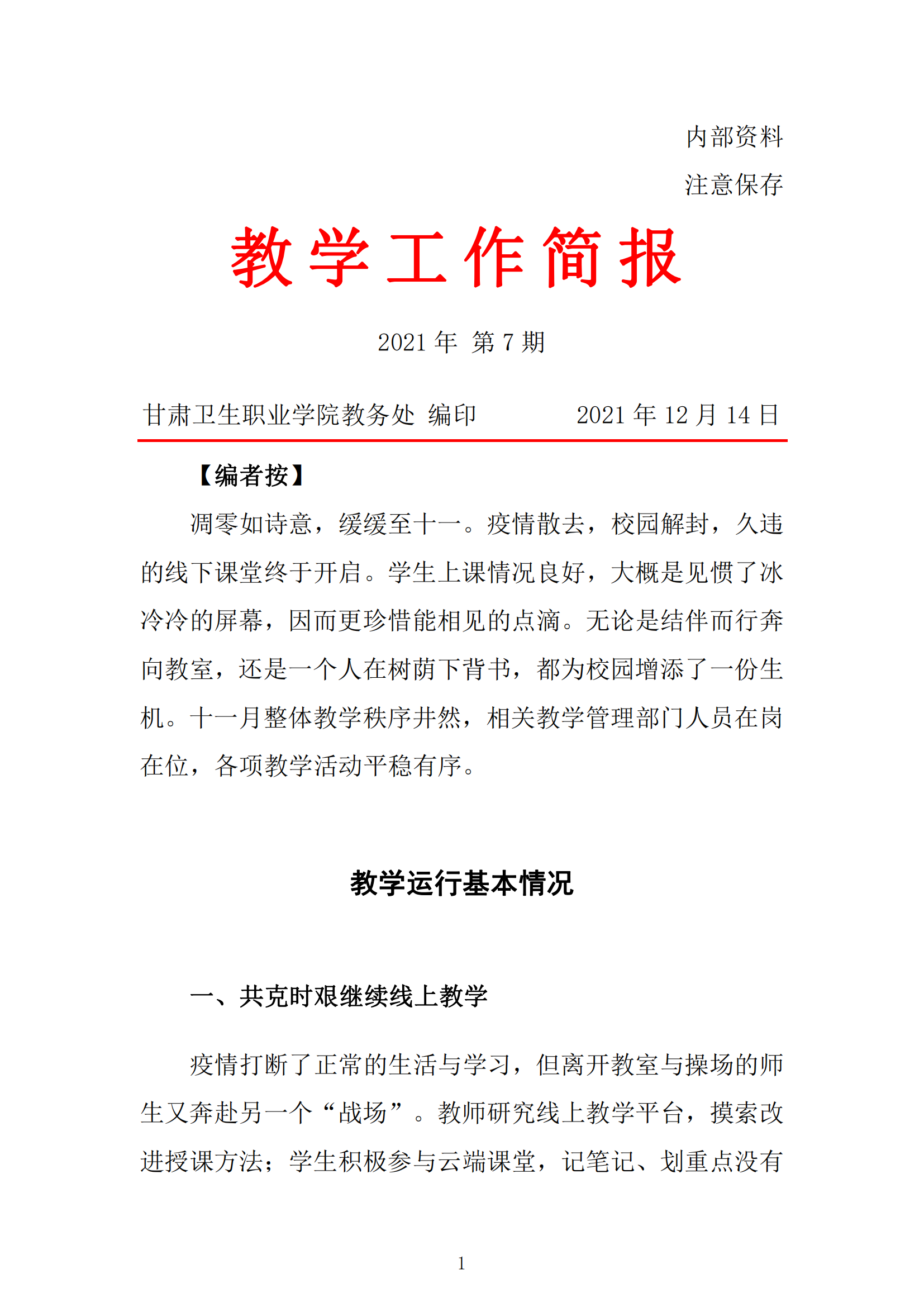 2021年11月份教学工作简报