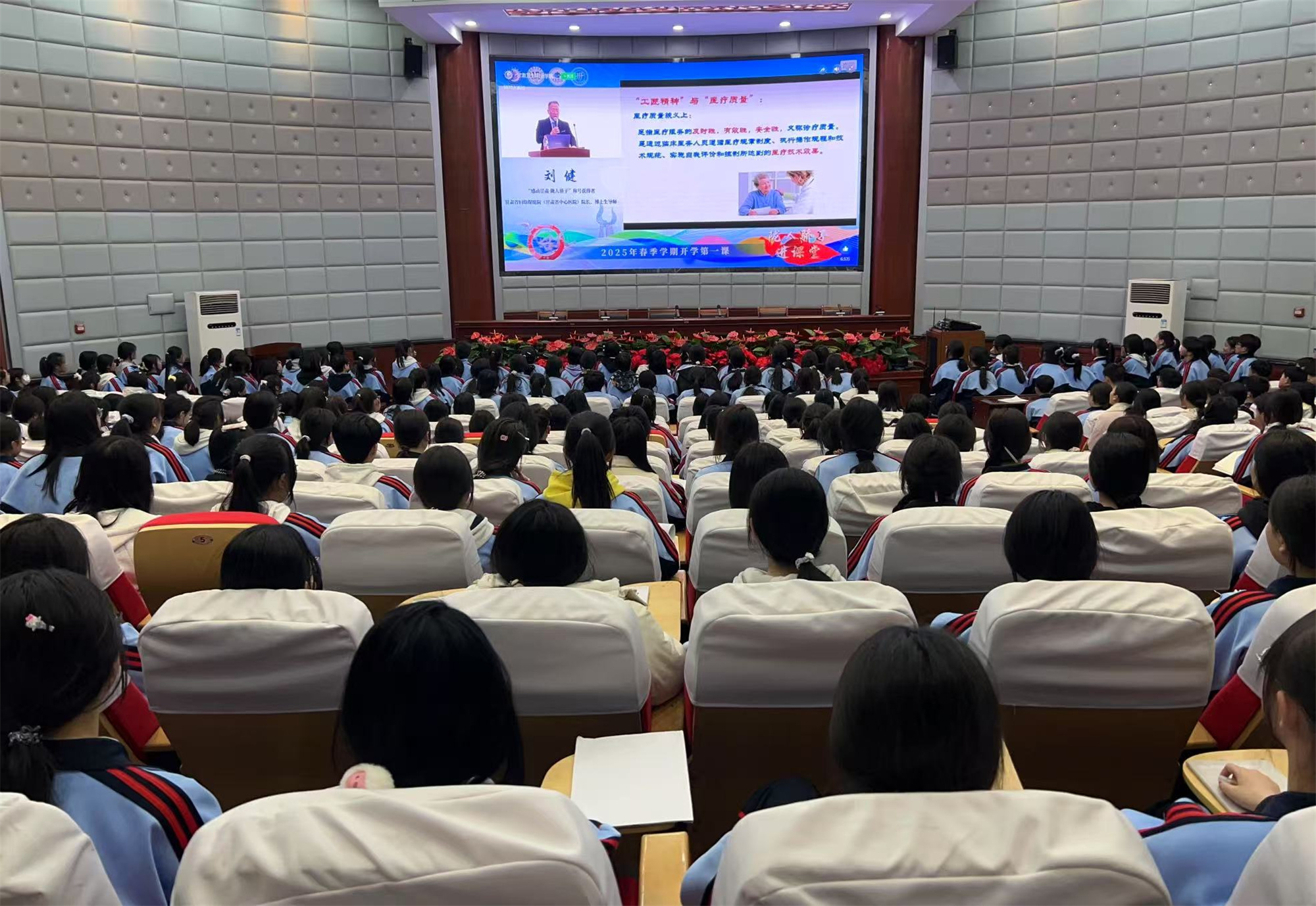 3月3日晚,英国365上市官网携手甘南州卫生学校、陇南市卫生学校、天水市卫生学校以线上线下联动形式开展2025年春季学期“开学第一课”思想政治教育活动。本次活动特别邀请到“感动甘肃 陇人骄子”荣誉称号获得者、甘肃省妇幼保健院(甘肃省中心医院)党委副书记、院长、博士生导师刘健教授担任主讲,四校师生通过云端共聚,开启新学期的思政教育第一课。活动采用“线上直播+分会场联动”模式,主会场设于英国365上市官网笃学楼学术报告厅,全部在校班级教室及三所卫校设分会场,全体实习生通过微信公众号、抖音直播等平台同步参与,四校共一万七千余人参加活动,直播线上观看数达到7626人次。学校全体在家校领导现场出席活动,党委副书记、校长王建成主持活动。
