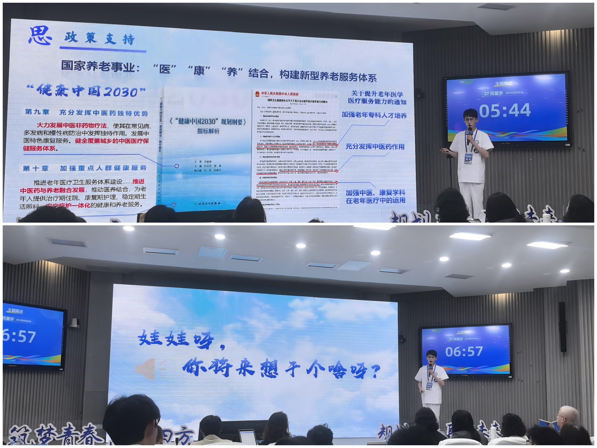 本届大赛自2024年10月启动以来,历时半年吸引全国1507万名学生报名,覆盖2763所高校。我校何星宇同学以省赛成长赛道(职教组)金奖第二名的成绩代表甘肃省参加第二届全国总决赛。总决赛中,他紧扣老龄化社会健康服务需求,以“社区中医老年康复医师”为职业目标,将专业特色与社区养老服务深度结合,展现出我校学子良好的专业素养与实践能力,最终获铜奖。