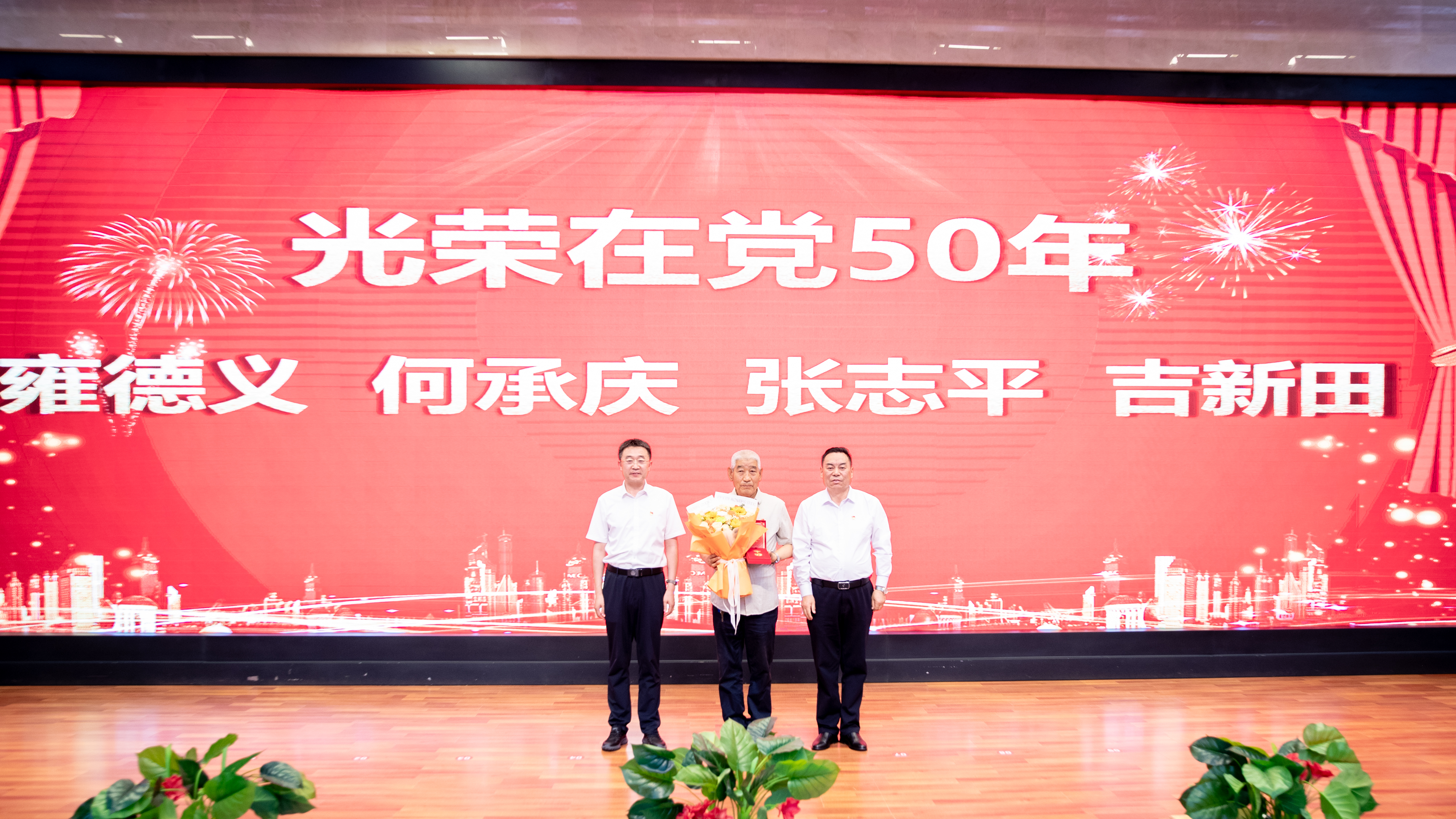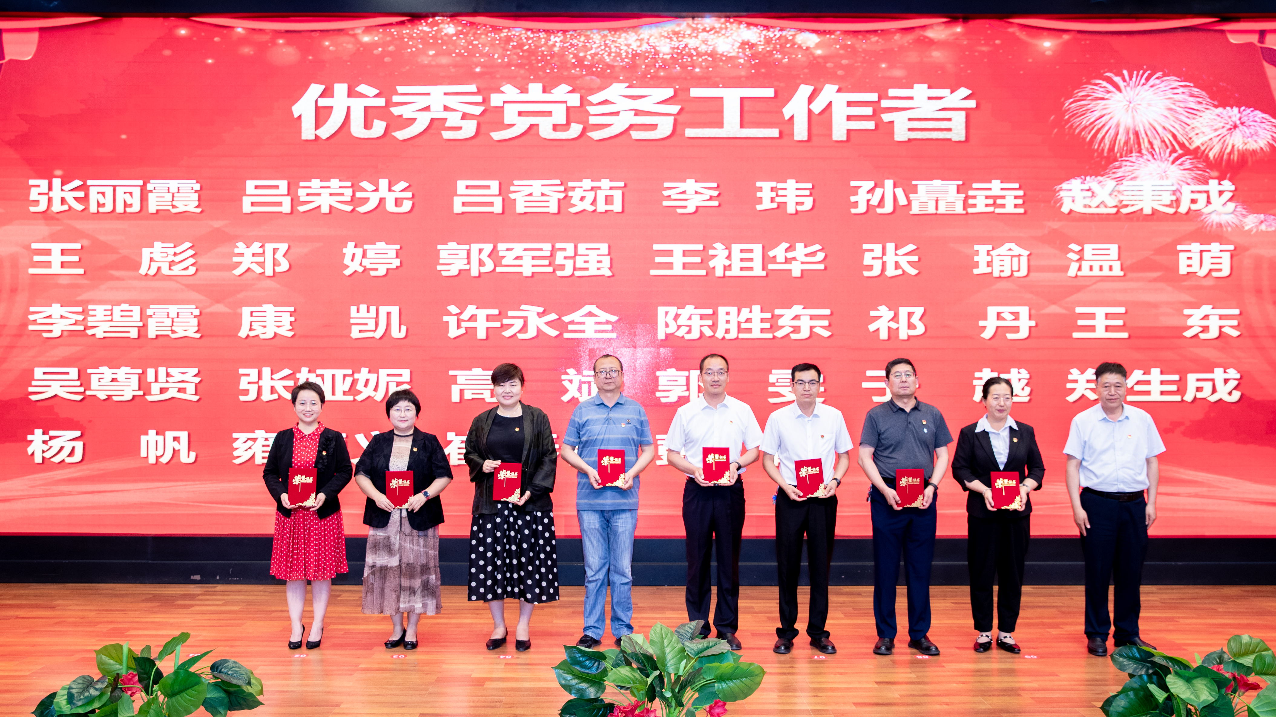 大会在庄严的国歌声中拉开帷幕。纪委书记刘斌宣读表彰决定,会上为“光荣在党50年”党员代表雍德义同志颁授纪念章并献上鲜花,向老党员致以崇高敬意,同时对受表彰的先进基层党组织、优秀党务工作者和优秀共产党员进行了集中表彰。获奖代表们依次登台,来自先进基层党组织、优秀共产党员和优秀党务工作者三个群体的代表,结合各自在教学、管理、服务岗位上的工作实际,生动讲述了他们的奋斗历程,分享了工作感悟和心得体会。