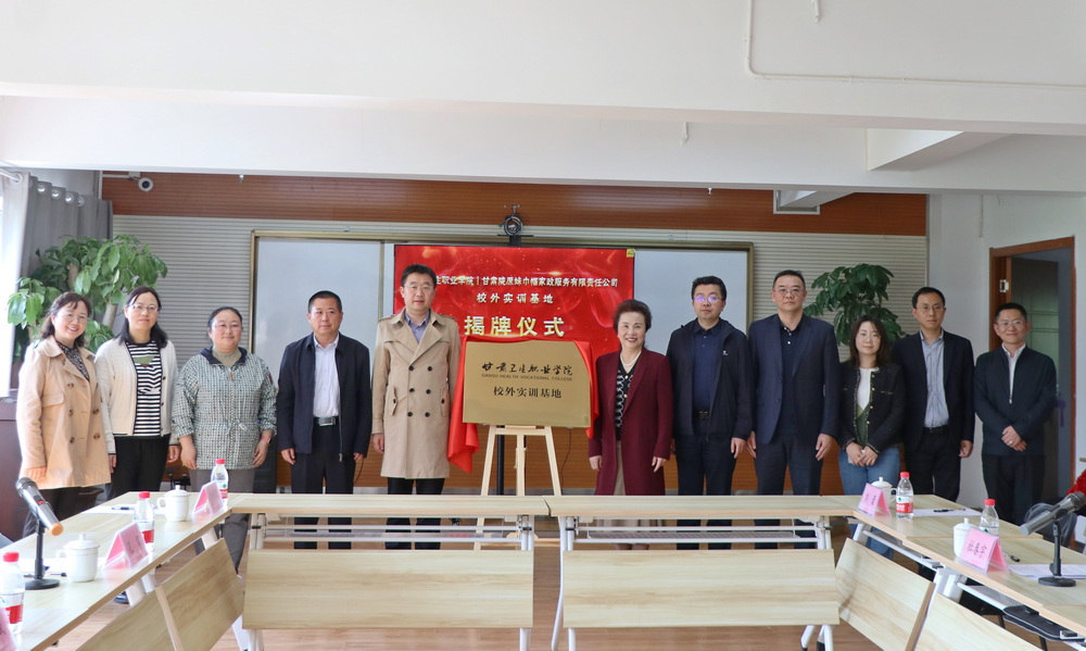 5月12日,学校与甘肃陇原妹巾帼家政服务有限公司校外实训基地揭牌仪式在兰举行。甘肃省人力资源与社会保障厅职业能力建设处处长史永斌、甘肃省商务厅服务贸易处处长孔军出席揭牌仪式。学校党委副书记、副校长王建成带领学校校企合作办公室、教务处、临床护理学院负责人,兰雅集团董事长、陇原妹家政服务公司董事长宋艾芳及公司管理层和员工代表参加揭牌仪式。揭牌仪式由兰雅集团执行总经理杜春宇主持。