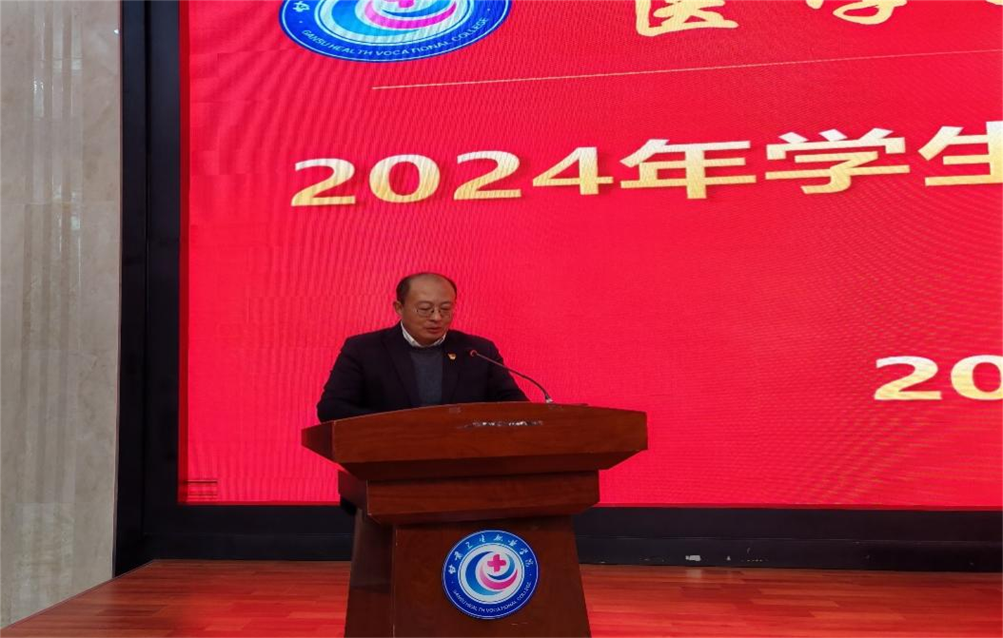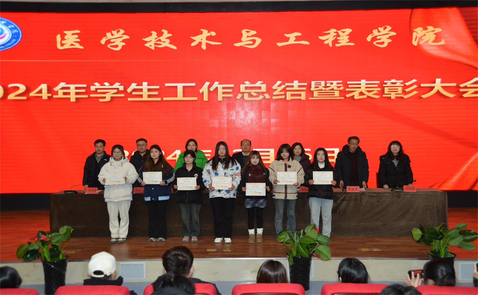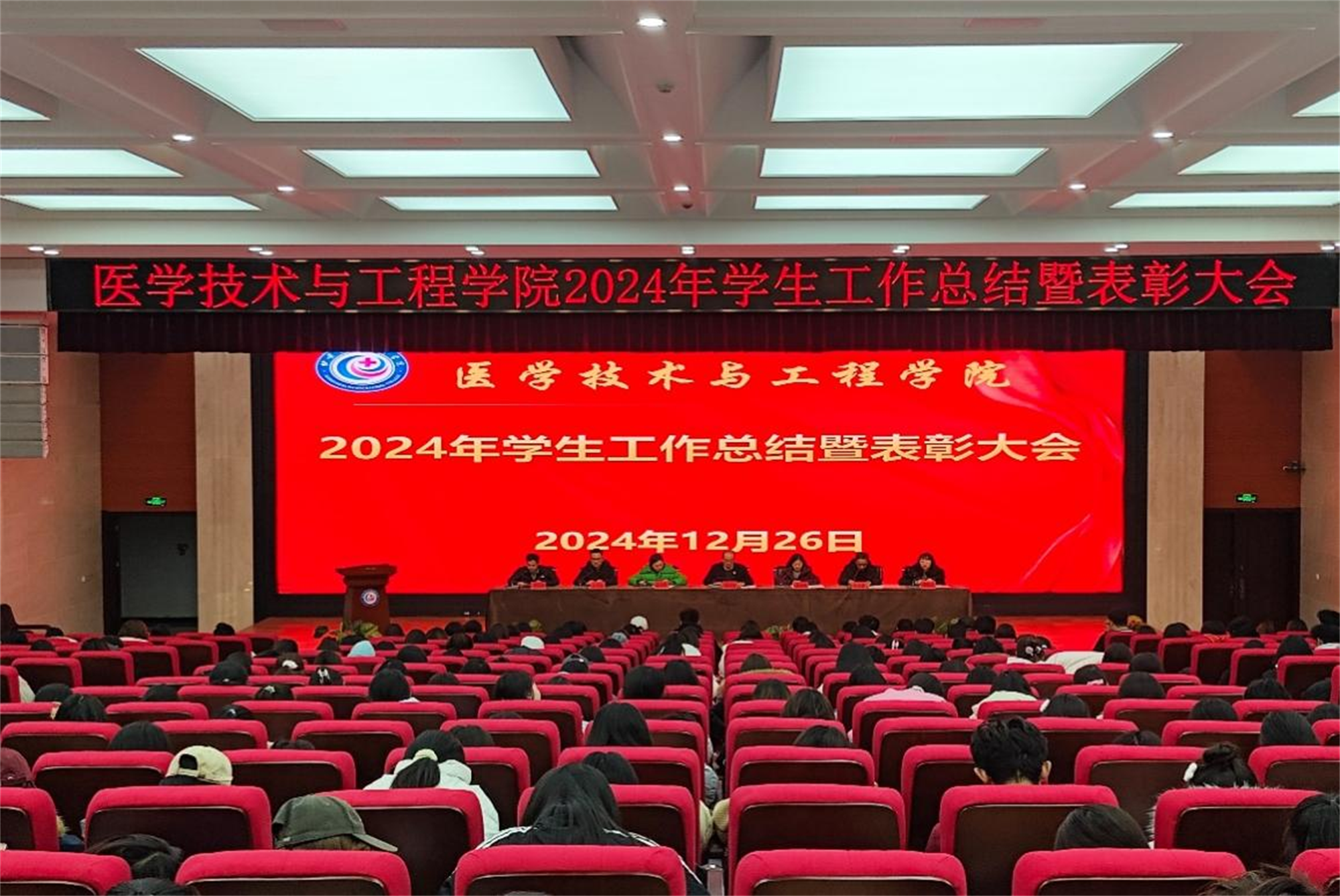 为总结2024年学生工作,表彰先进,发挥榜样力量,12月26日晚,医学技术与工程学院在一号教学楼报告厅组织召开“2024年学生工作总结暨表彰大会”。学院党总支书记、院长、副院长、检验教研室主任、影像教研室主任、学院职能办公室负责人、辅导员、获奖学生代表、各班级学生代表等四百余人参加了本次会议,会议由学院副院长主持。