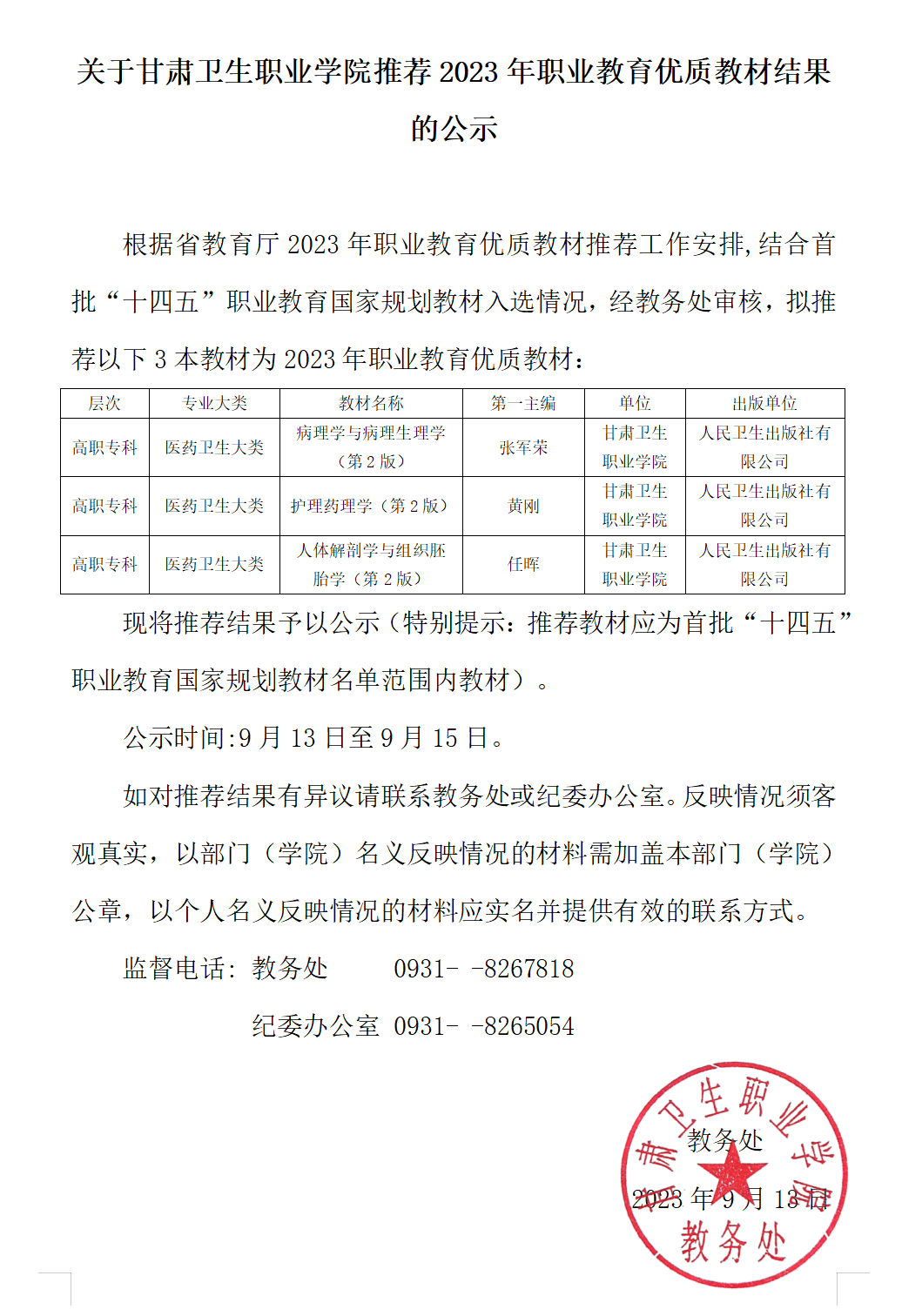 关于英国365上市官网推荐2023年职业教育优质教材结果的公示发布时间:2023-09-12 -